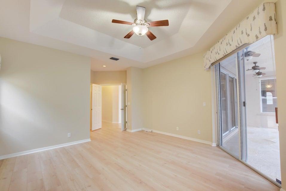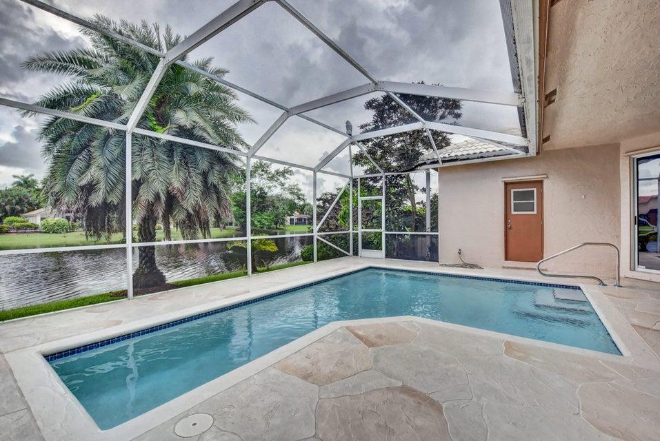 Beautifully renovated 4 bedroom, 2-1/2 bathrooms one-story pool home w breathtaking lake views. House has been freshly painted inside and new wood laminate has been installed in the bedrooms. Kitchen features dark custom cabinets, granite countertops, stainless steel appliances & breakfast bar. Master bathroom has slate tiles and jacuzzi tub, double sinks and separate shower. Master bedroom has custom closet treatments. Home has hurricane shutters. Community amenities include basic cable w HBO & Internet, clubhouse, heated pool, hot tub, sauna & steam room, gym offering free fitness classes, tennis programs at the tennis center, basketball, racquetball, soccer field, and racquetball courts. Residents can enjoy Happy Hour every other Friday at the Gazebo (BYOB). Close to all. A+ Schools.