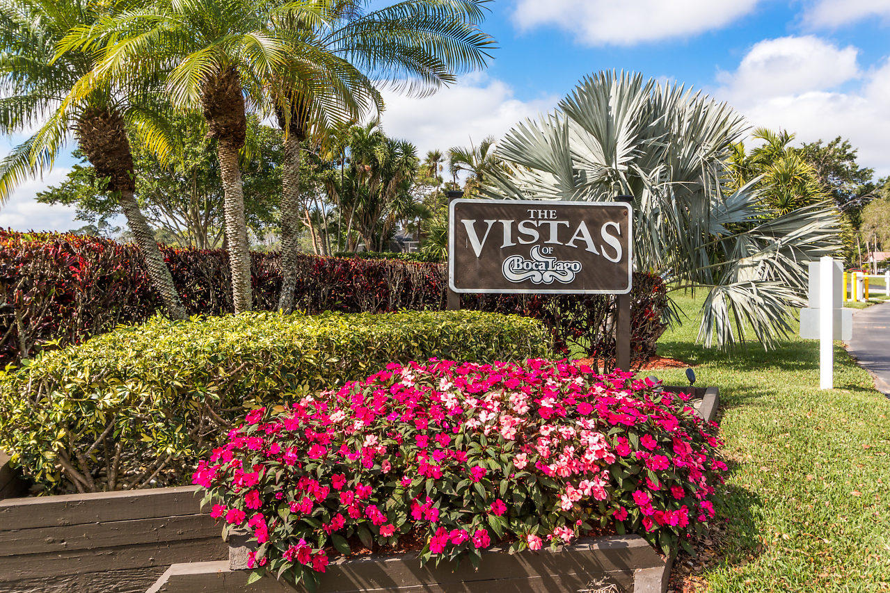 2-story end unit townhouse w/ magnificent lake views! First floor includes updated 1/2 bath and neutral tile floors. Large eat-in kitchen w/ hidden washer/dryer cabinet. Dining/sunken living room overlook private screened-in patio and lake. Newly installed carpet on stairway and 2nd floor. Large bedrooms with built-in walk-in closets. Master has private balcony overlooking lake, dual WIC's and ensuite bathroom. One assigned parking spot & guest parking. Vistas of Boca Lago has access to private clubhouse & pool. Boca Lago Country Club membership offering golf, tennis & more is available but not mandatory.