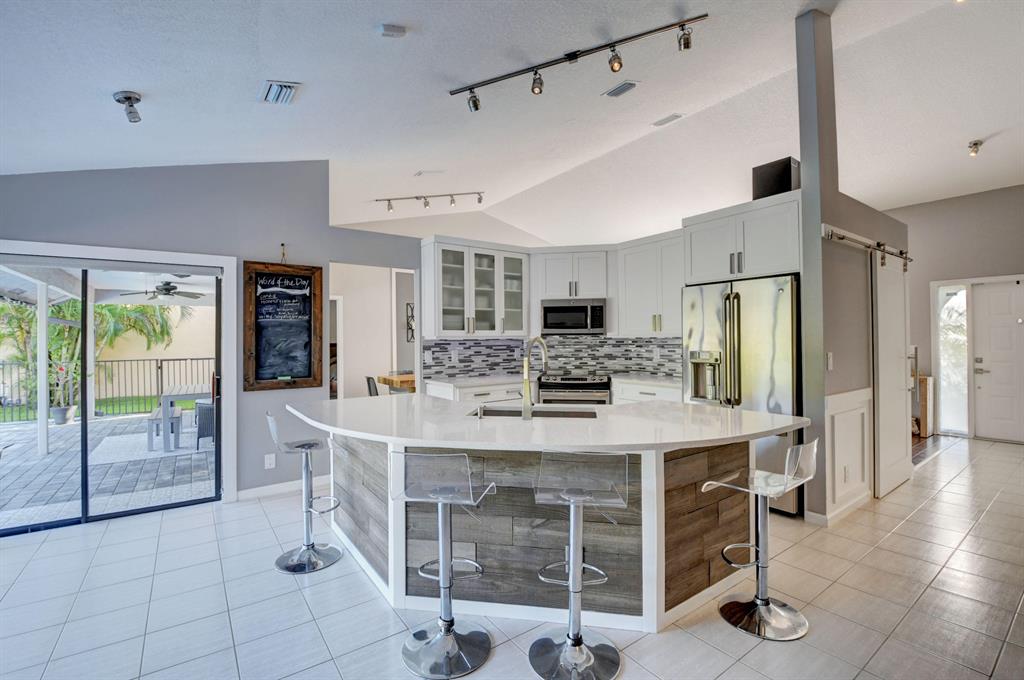 Beautiful and fully renovated home on a large private lot in West Boca gated community(non equtiy). New roof and pool, new kitchen and baths. This home has quartz counter tops, white shaker cabinets with new GE Stainless appliances. New washer and dryer, LED lights, pool with beach step and multi colored LED. Custom moldings and wainscoting. AC/Water heater both replaced in 2013. A must see!!