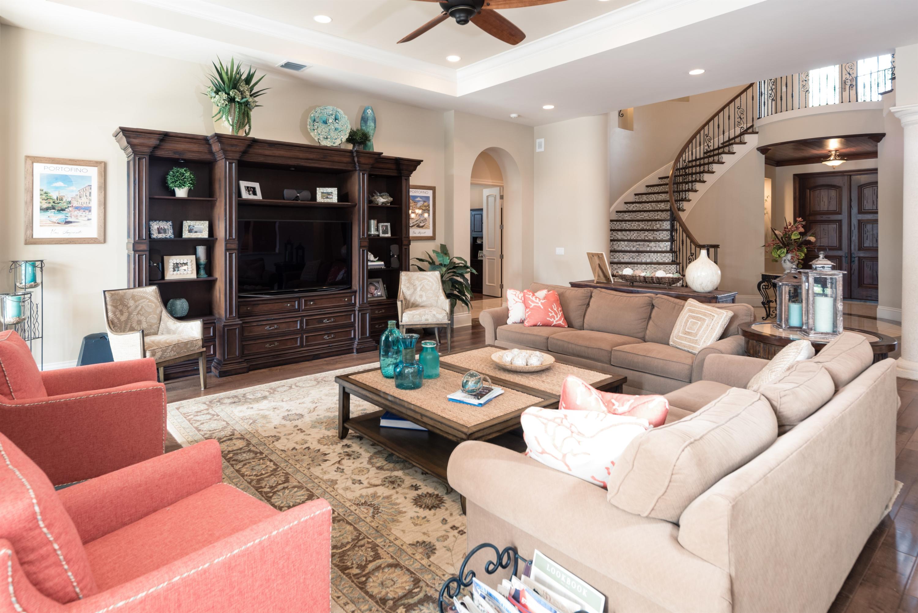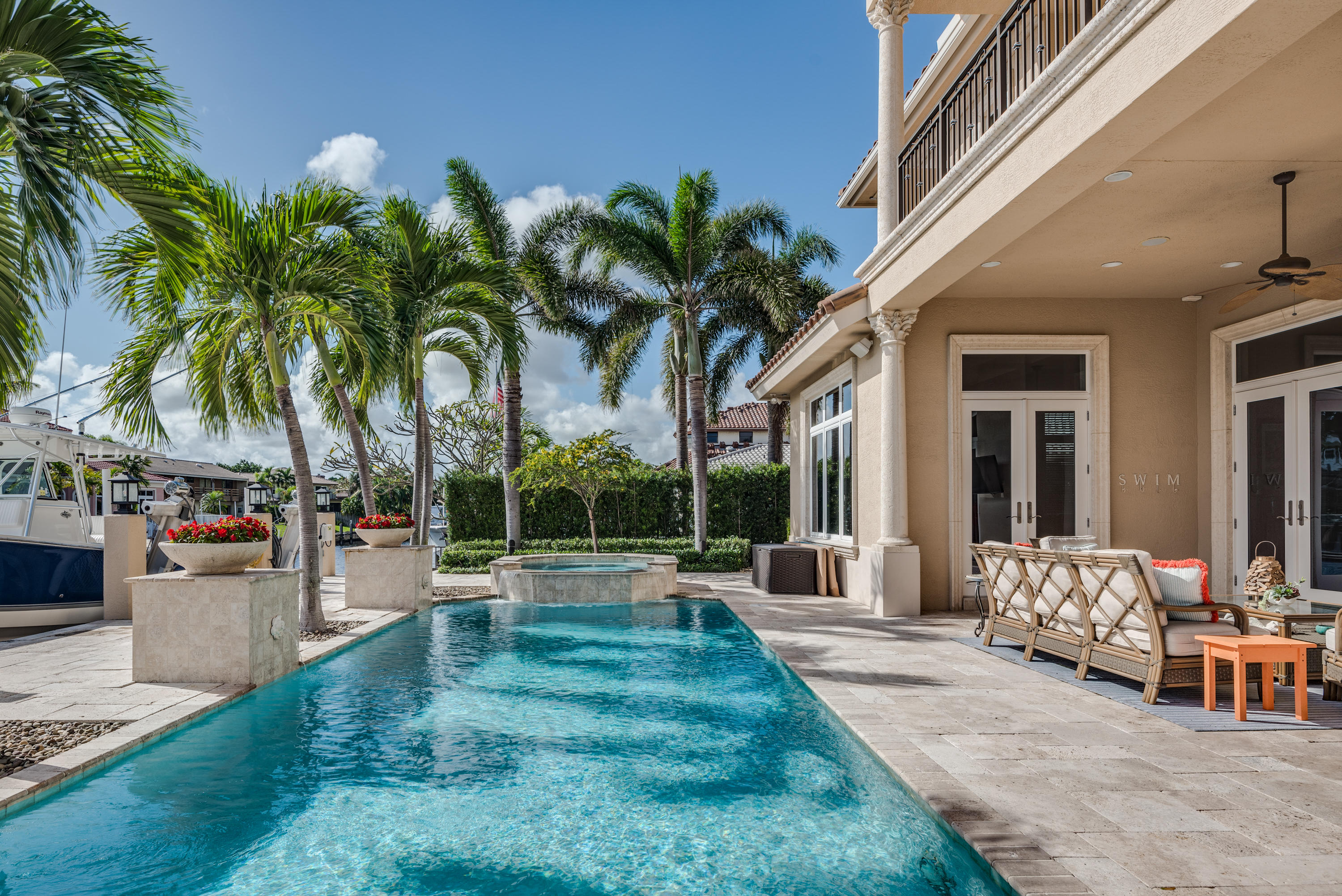 Spectacular Waterfront Estate with Southern Exposure! 5 bedroom, Two-story Magnificent Dream Home with 5 1/2 baths, 3 car garage, all on-suite baths situated on a private street on cul-de-sac. 90 ft of waterfrontage, concrete dock, 14k boat lift, impact windows & doors, full house generator, circular driveway, marble and wood throughout living area of home, circular stairs to 2nd floor with wood treads & iron pickets, large gourmet kitchen with walk-in pantry & center island, Wolf & subzero appliances, wine room with large wine refrigerator, wood burning fireplace with gas starter, integrated entertainment system speakers throughout house, resort style pool with Jacuzzi, salt generator system for pool and spa, gas heater for spa and outdoor kitchen with built-in grill. See Document Sectio