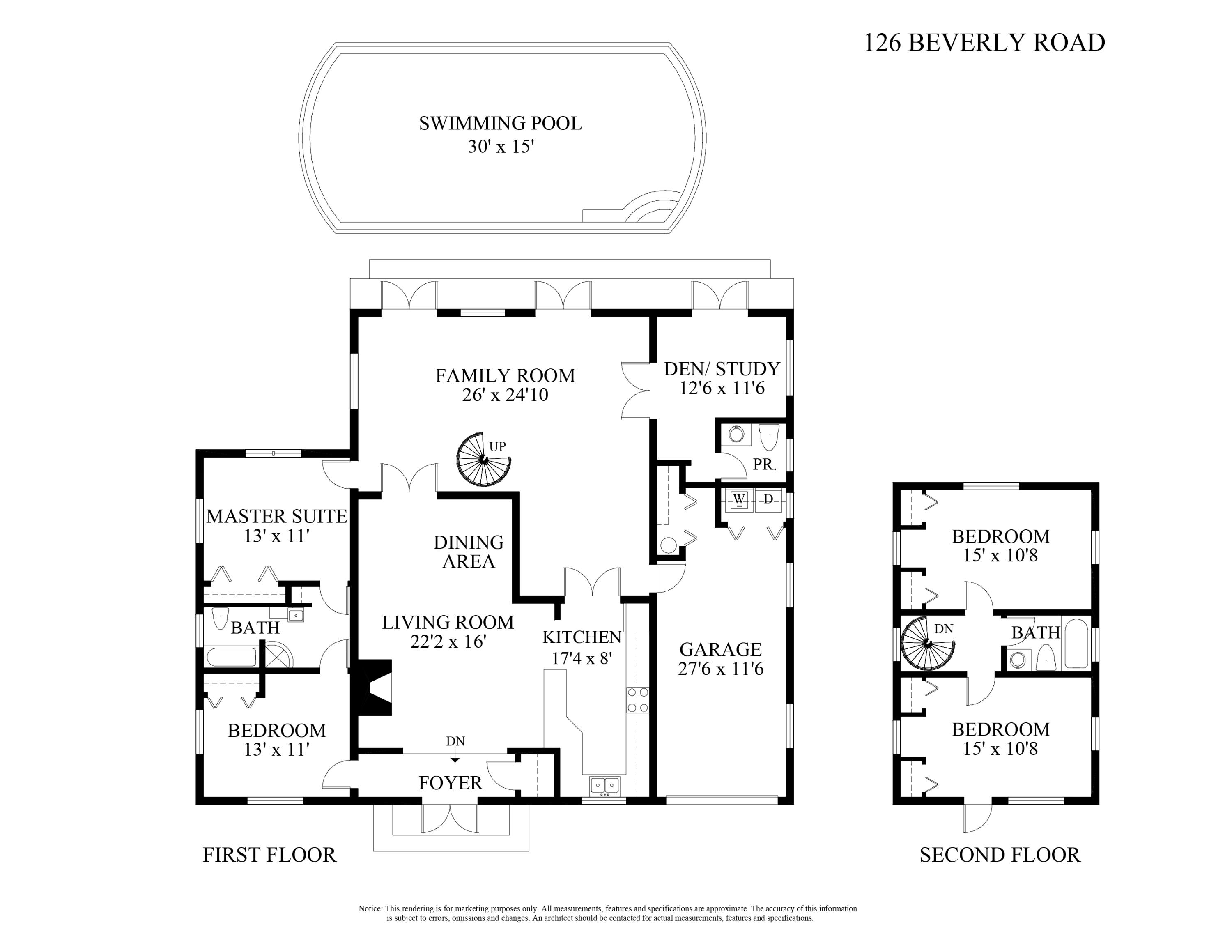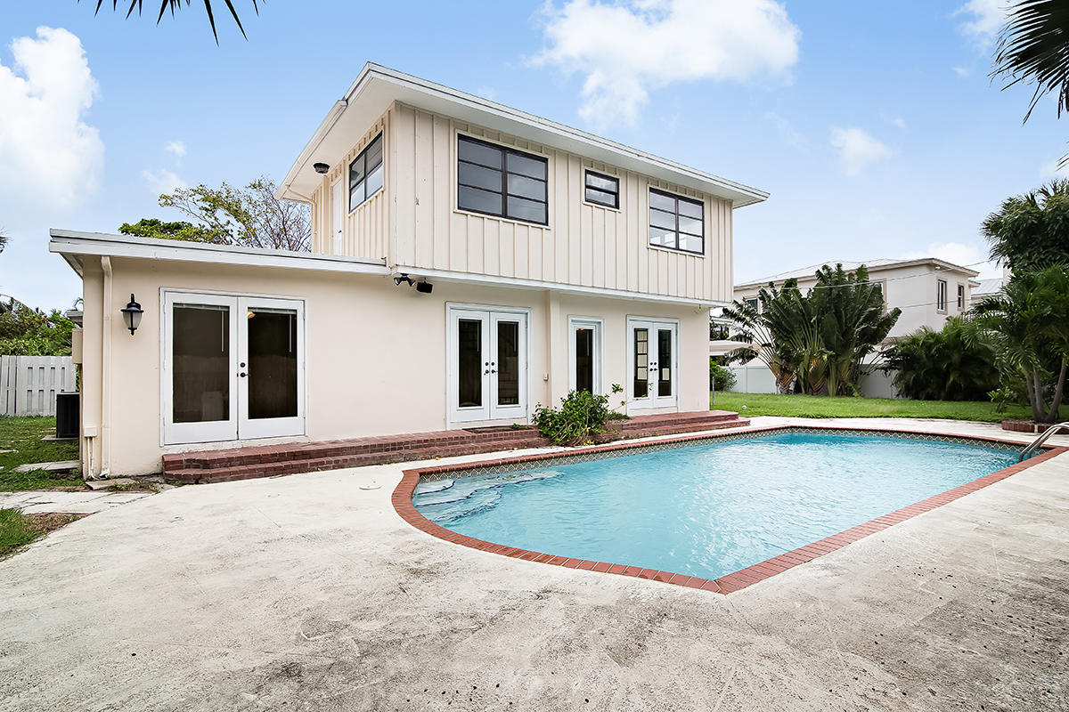 LOCATION! LOCATION! LOCATION! Situated on a large 10,000+ sq. foot lot and only 4 properties west of Flagler Drive and the Intracoastal waterway rests this 4 bedroom/ 2.5 bathroom home with an open floor plan and swimming pool. The master bedroom is currently located on the first floor with immediate access to both the living and the family rooms. Two guest rooms are located on the 2nd floor over looking the gracious back yard. Bring your design hat and start from scratch or renovate existing. The property is listed at land value, is in the South Olive Elementary school district and is close to I-95, area beaches, PBI airport, restaurants and downtown WPB. All sizes are aprox and subject to error and omission