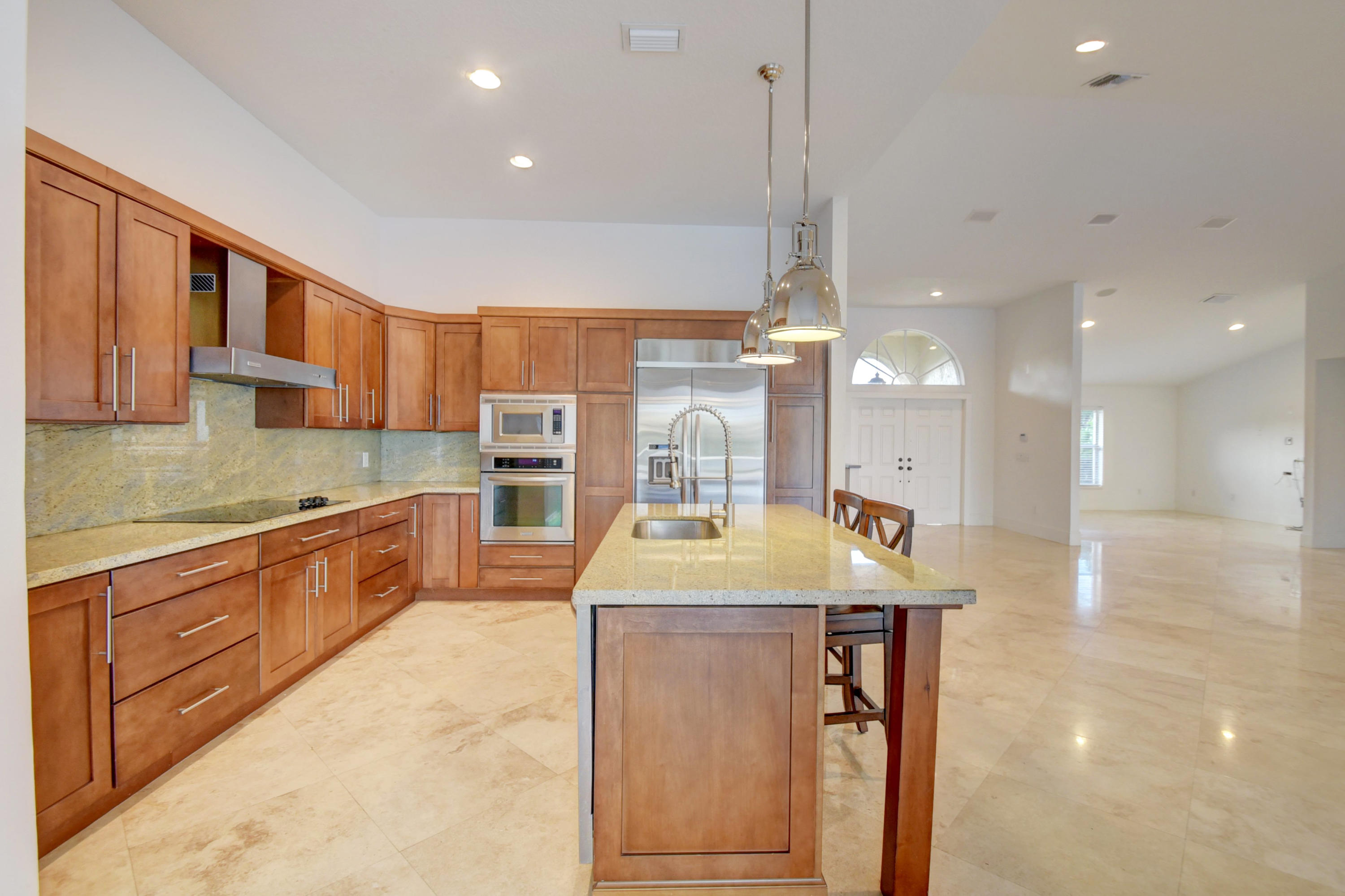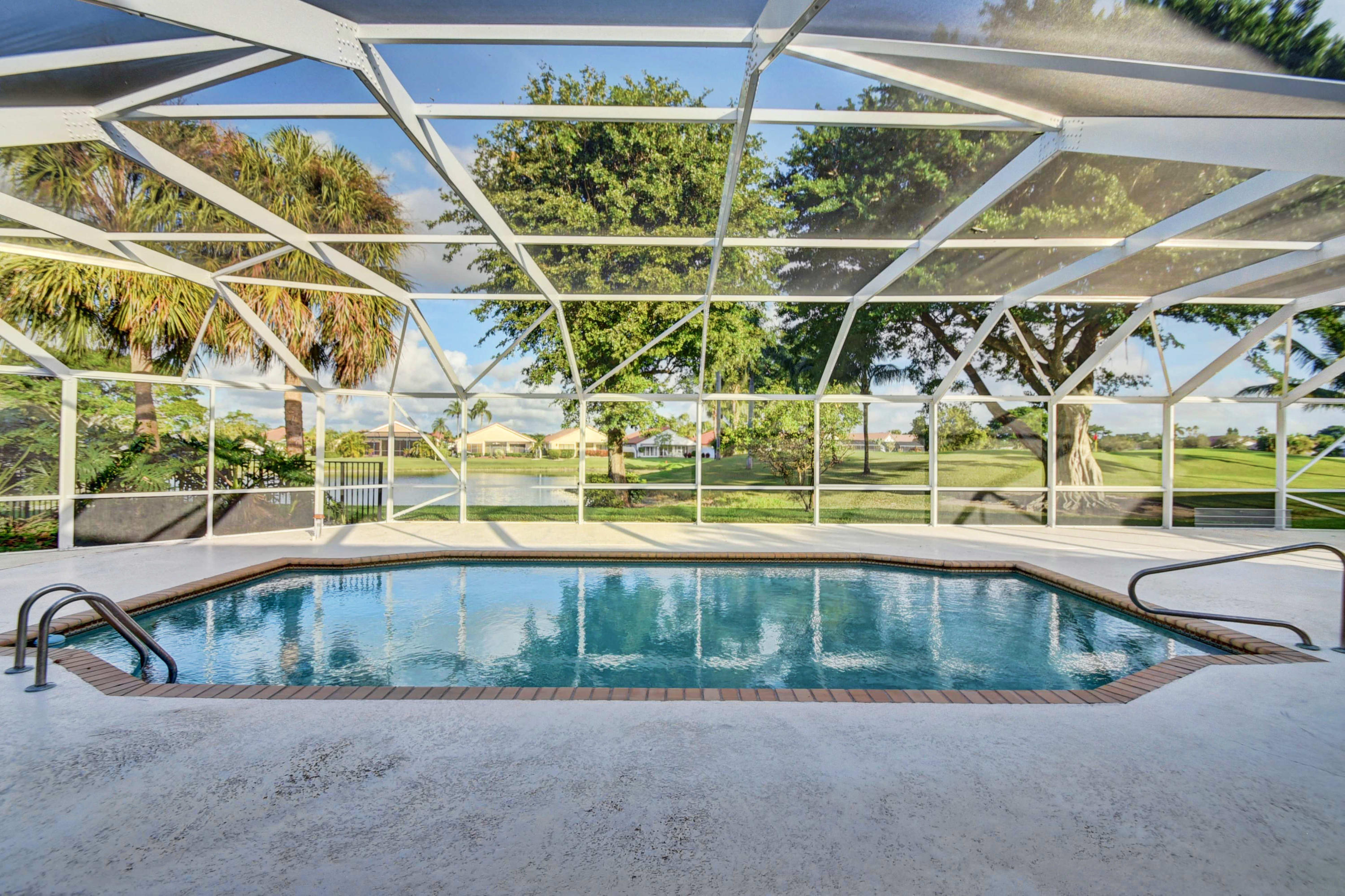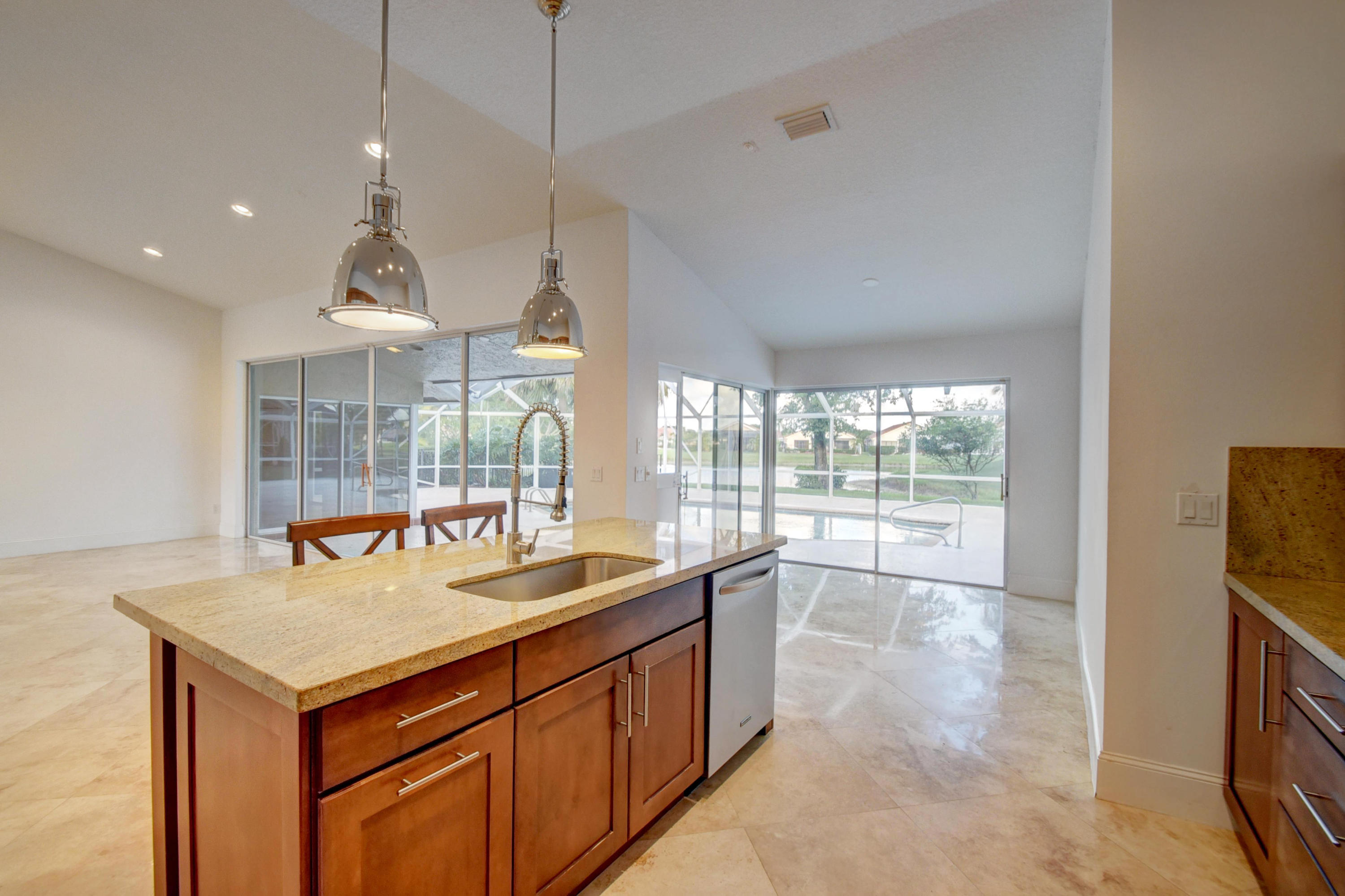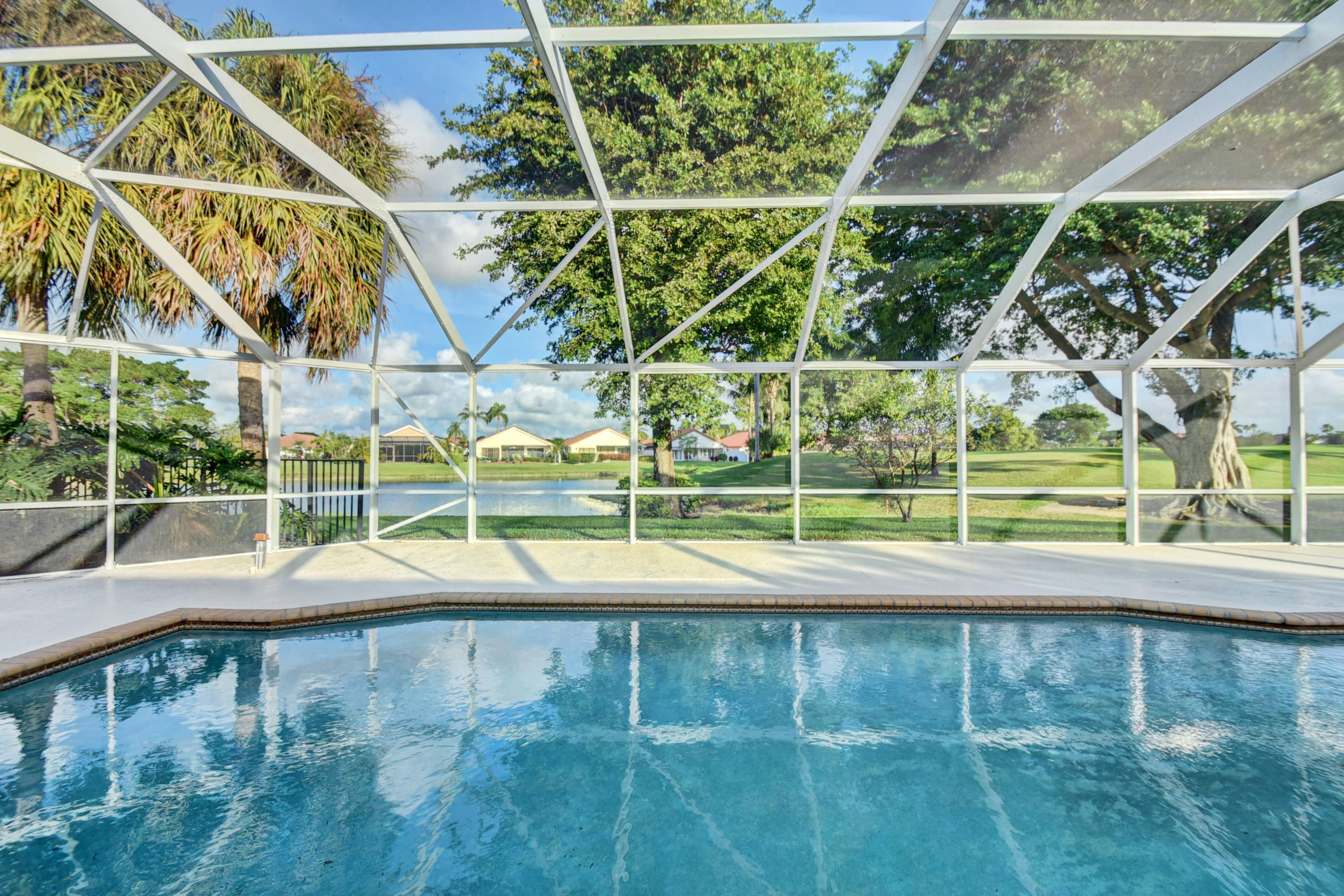Custom Deluxe Brittany 3 bedrooms, 2.5 bath, 2CG pool home. This open floor plan is situated adjacent to Lakes #1 green and boasts over 2900(ft2), split bedroom floor plan, large great room, den, formal dining room, breakfast area, 4 walk in closets w/ organizers, 7 " baseboards, 24 x 24 Marble and wood laminate floors, Updated kitchen w/ center island, granite and Craftsman cabinetry, stainless KitchenAid appliances, recessed lighting through out, high vaulted ceilings, expansive screened patio with a dog run and much more. All age high-end community with 2 championship golf courses, extensive practice area, fully equipped fitness center, tennis center, active clubhouse with valet parking, upscale dining, informal grill room restaurant, lounge including bar, card rooms, cabanas,