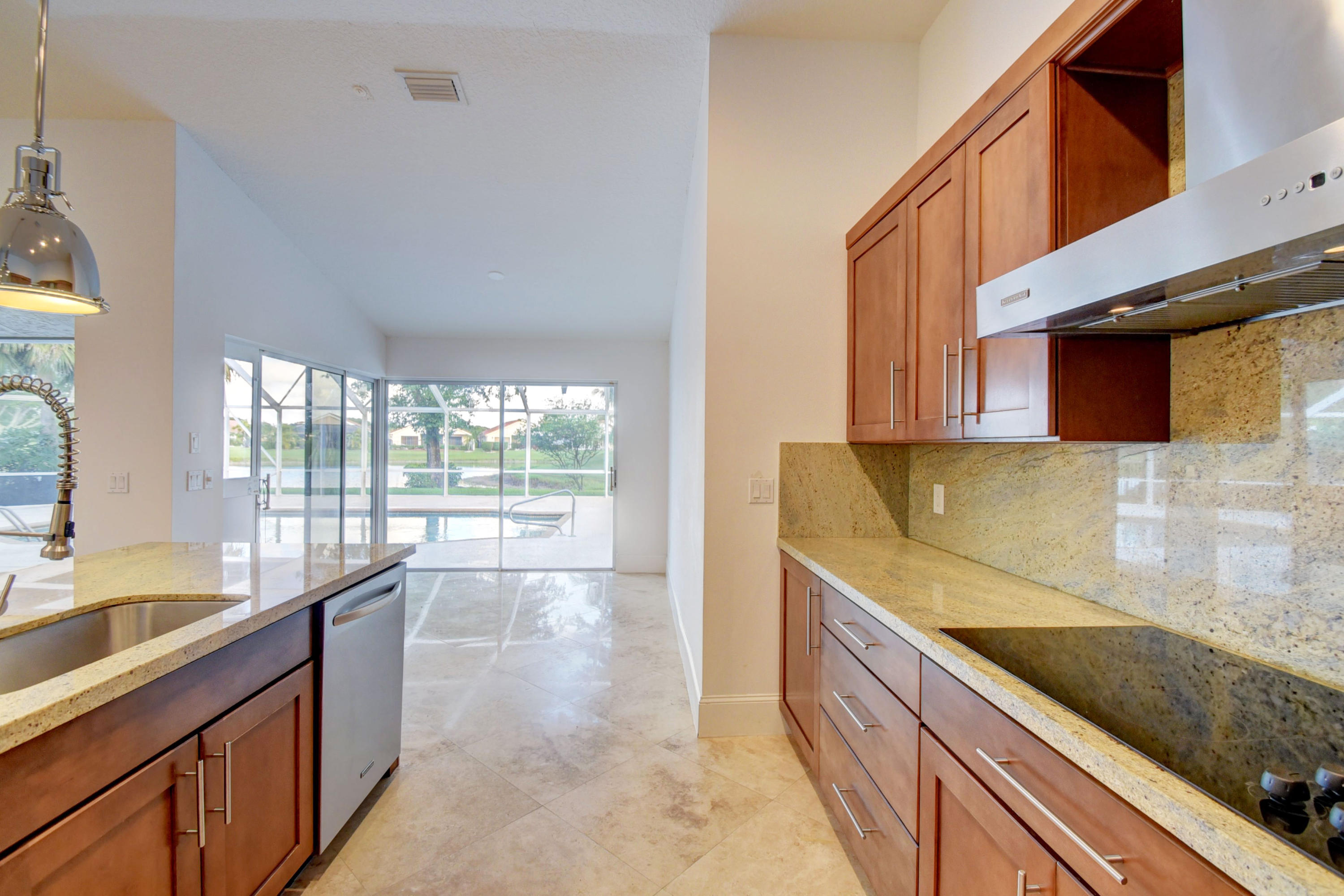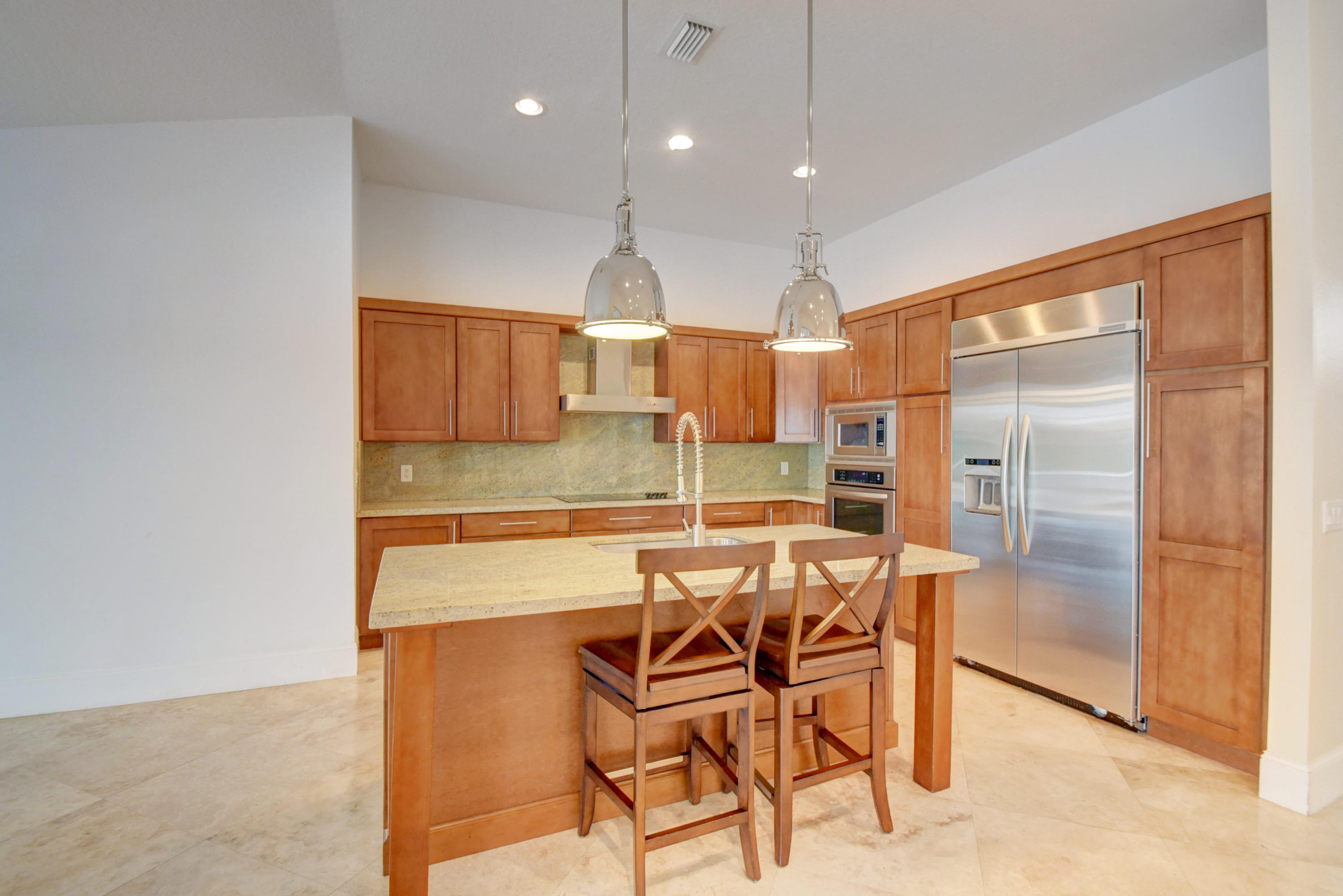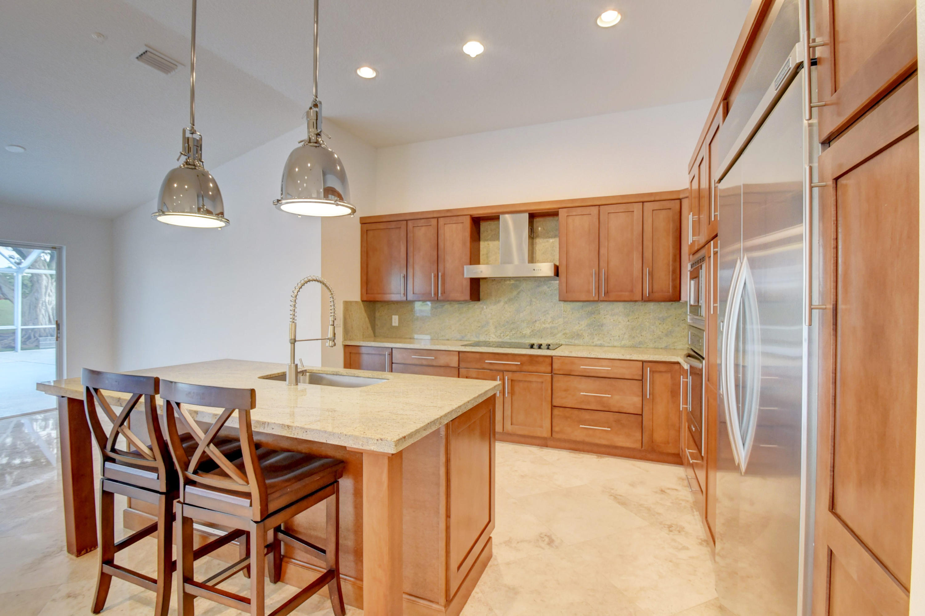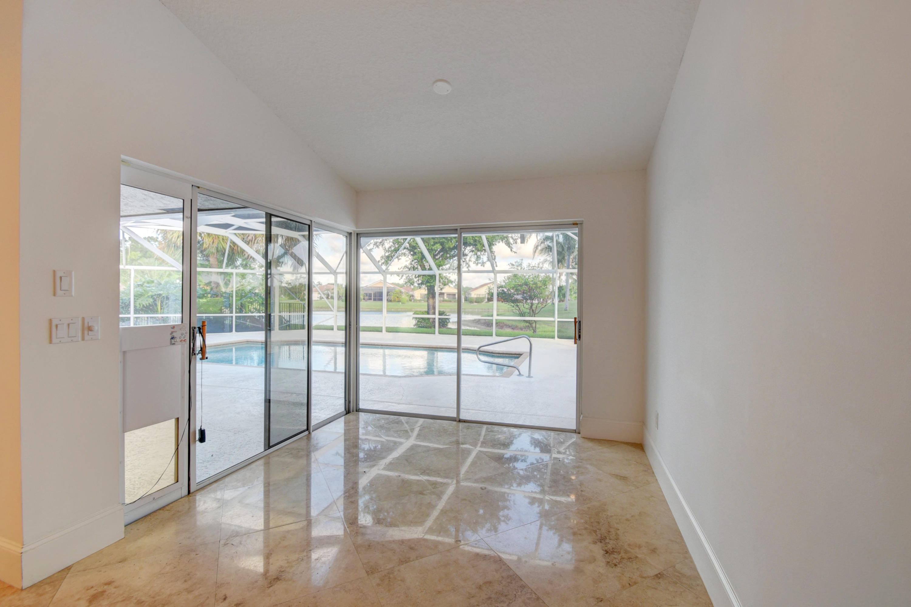 Custom Deluxe Brittany 3 bedrooms, 2.5 bath, 2CG pool home. This open floor plan is situated adjacent to Lakes #1 green and boasts over 2900(ft2), split bedroom floor plan, large great room, den, formal dining room, breakfast area, 4 walk in closets w/ organizers, 7 " baseboards, 24 x 24 Marble and wood laminate floors, Updated kitchen w/ center island, granite and Craftsman cabinetry, stainless KitchenAid appliances, recessed lighting through out, high vaulted ceilings, expansive screened patio with a dog run and much more. All age high-end community with 2 championship golf courses, extensive practice area, fully equipped fitness center, tennis center, active clubhouse with valet parking, upscale dining, informal grill room restaurant, lounge including bar, card rooms, cabanas,
