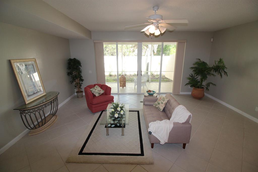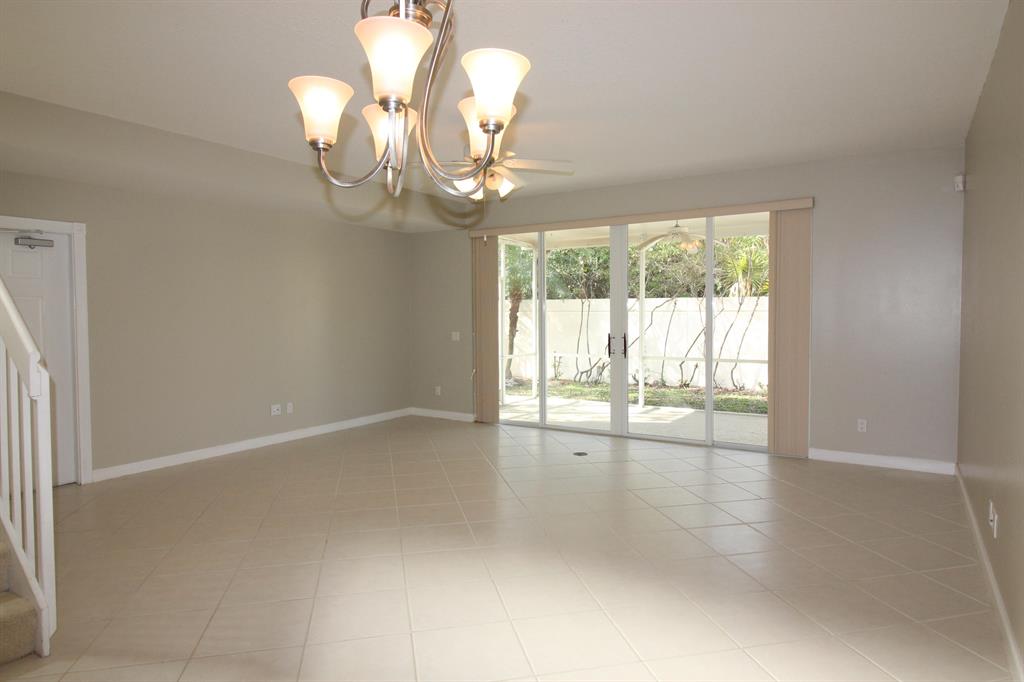 This ''Catalina'' model has an exceptional location, end unit with no neighbors on one side and total privacy as the property backs up to a tropical preserve! The main level is tiled and the large great room opens up to a dining area and spacious kitchen, separate laundry room with full size washer and dryer and half bath downstairs. Storage space under the staircase also.Extra Large master bedroom with generous closet space and a private bathroom with roman tub and walk in shower. The guest bathroom is also spacious and there is plenty of closet space in this well maintained property. This home also boasts a covered screened porch, overlooking a private walled garden, perfect for pets to play!