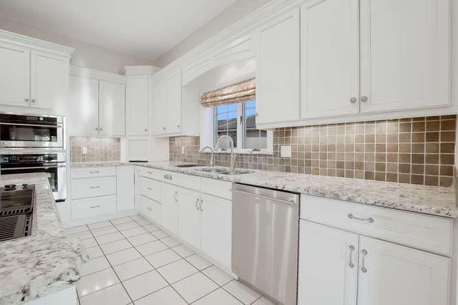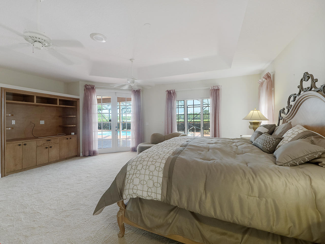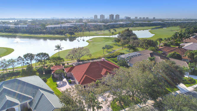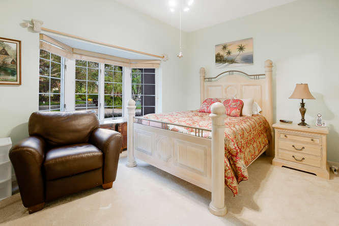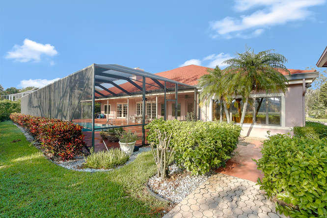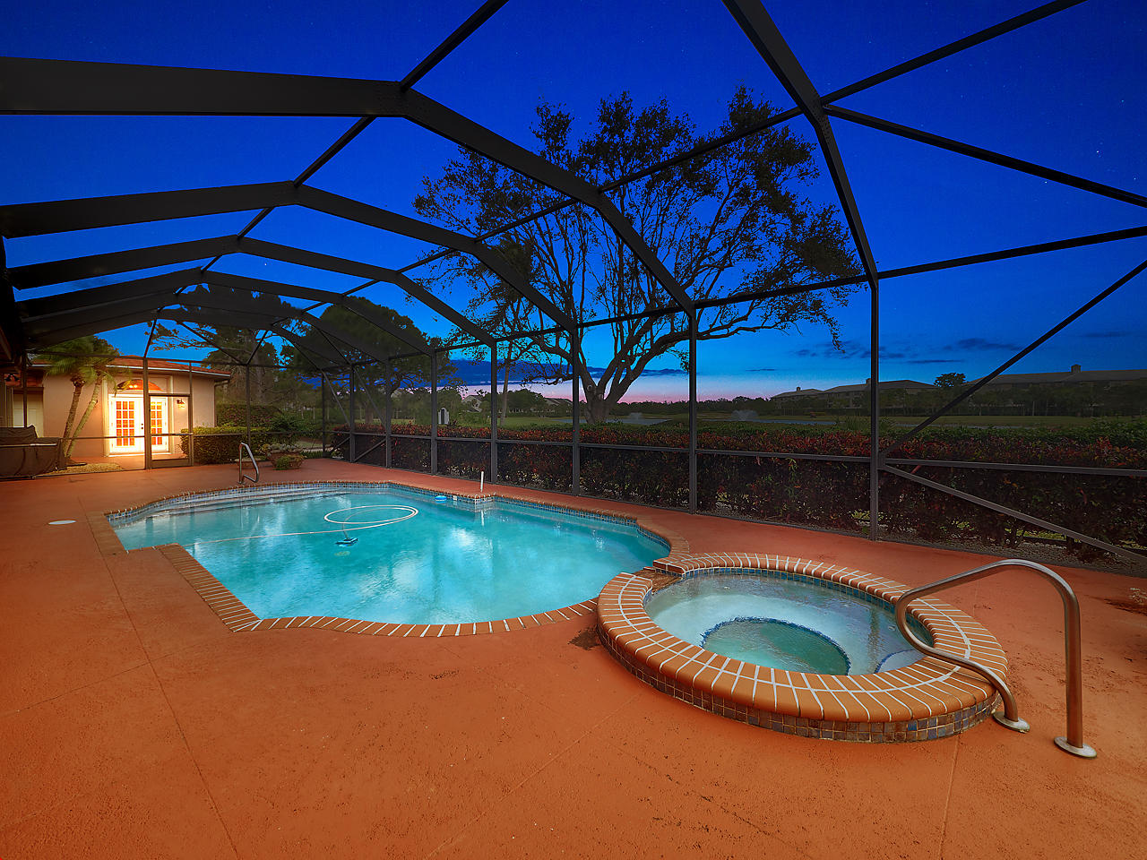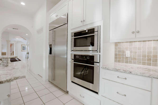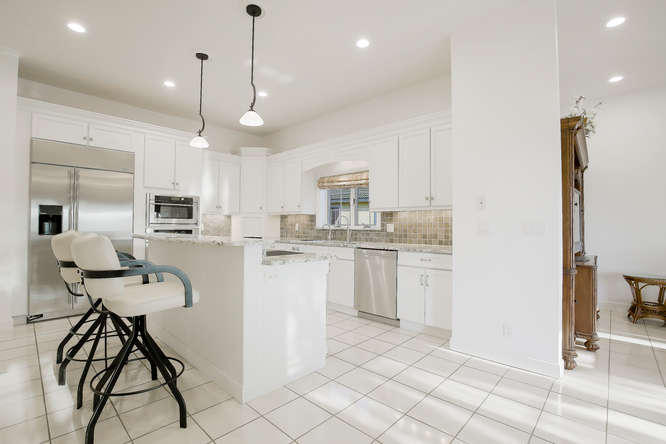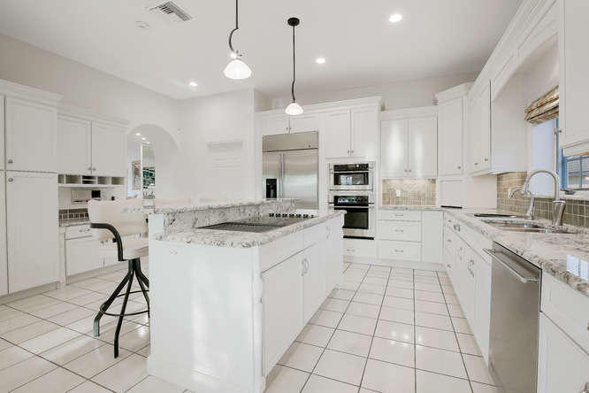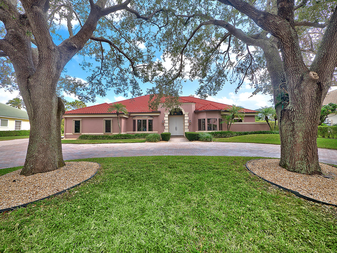 NO MANDATORY MEMBERSHIP! This 3 bedroom, 3 bath Bear Lakes Estate home with detached 1 bedroom 1 bath guest house is on a premium lot overlooking the lake on the 15th hole of The Lakes course of Bear Lakes Country Club. Ideal for entertaining, the entire home's layout focuses on the outdoor views of the course and water. Enter a formal foyer that opens to a living room with a wall of French doors, a fireplace and soaring open wood beam ceiling anchored by impressive Tuscan columns. The French doors beckon you to the expansive outdoor patio, pool and spa. There is a wet bar and formal dining area adjacent to the open living room. The kitchen has been remodeled with clean white cabinetry, granite counters, and high end stainless