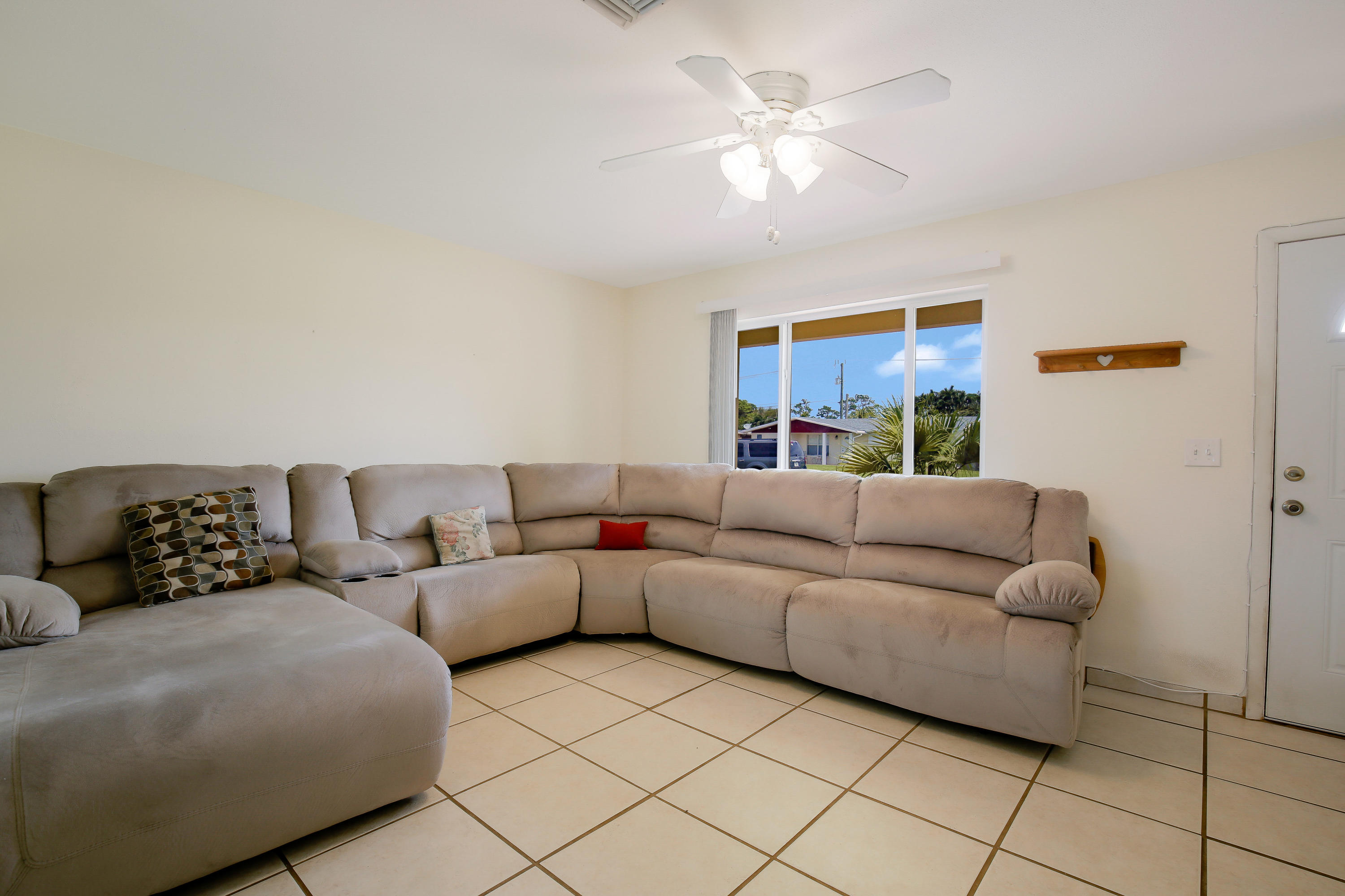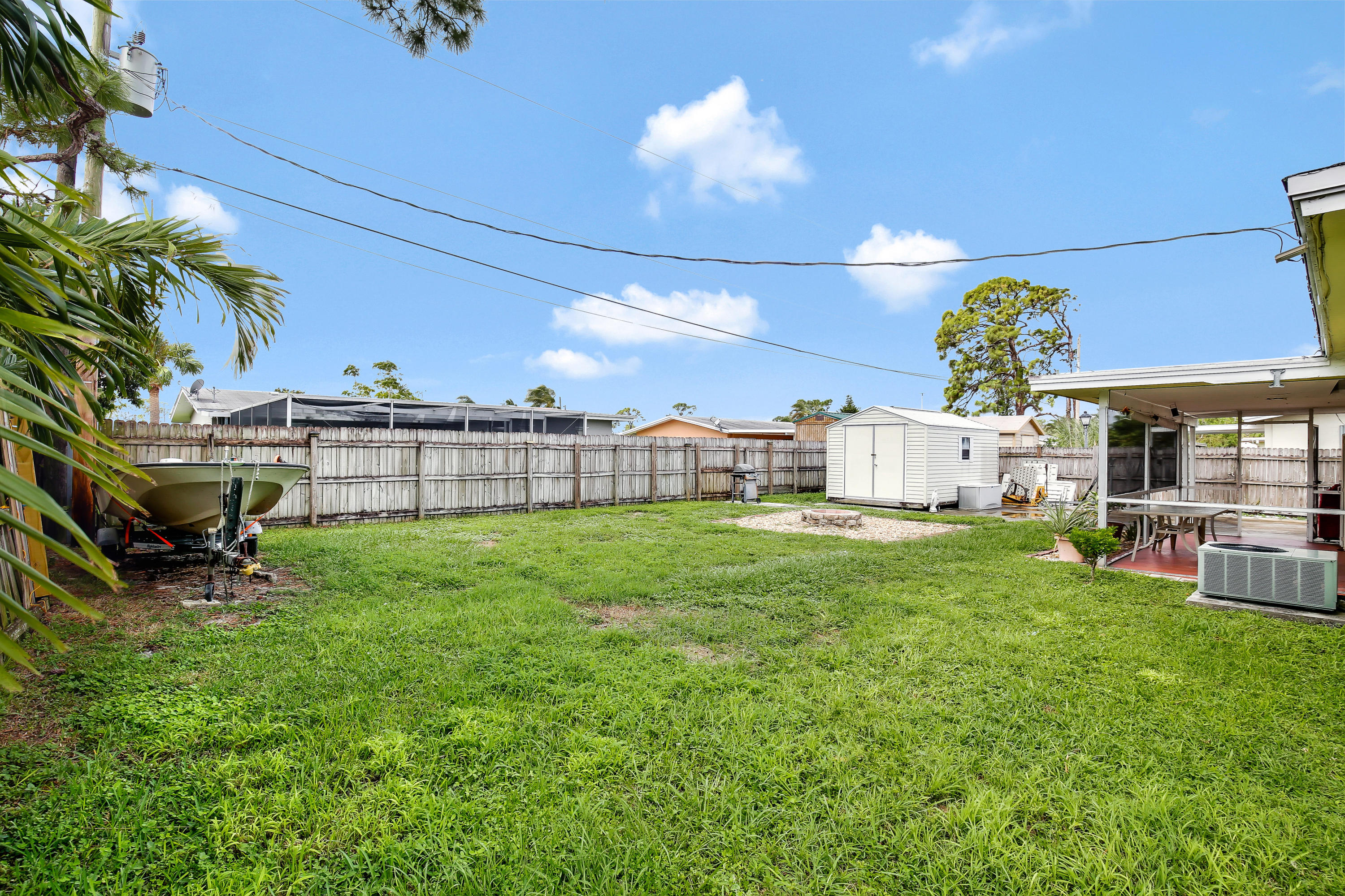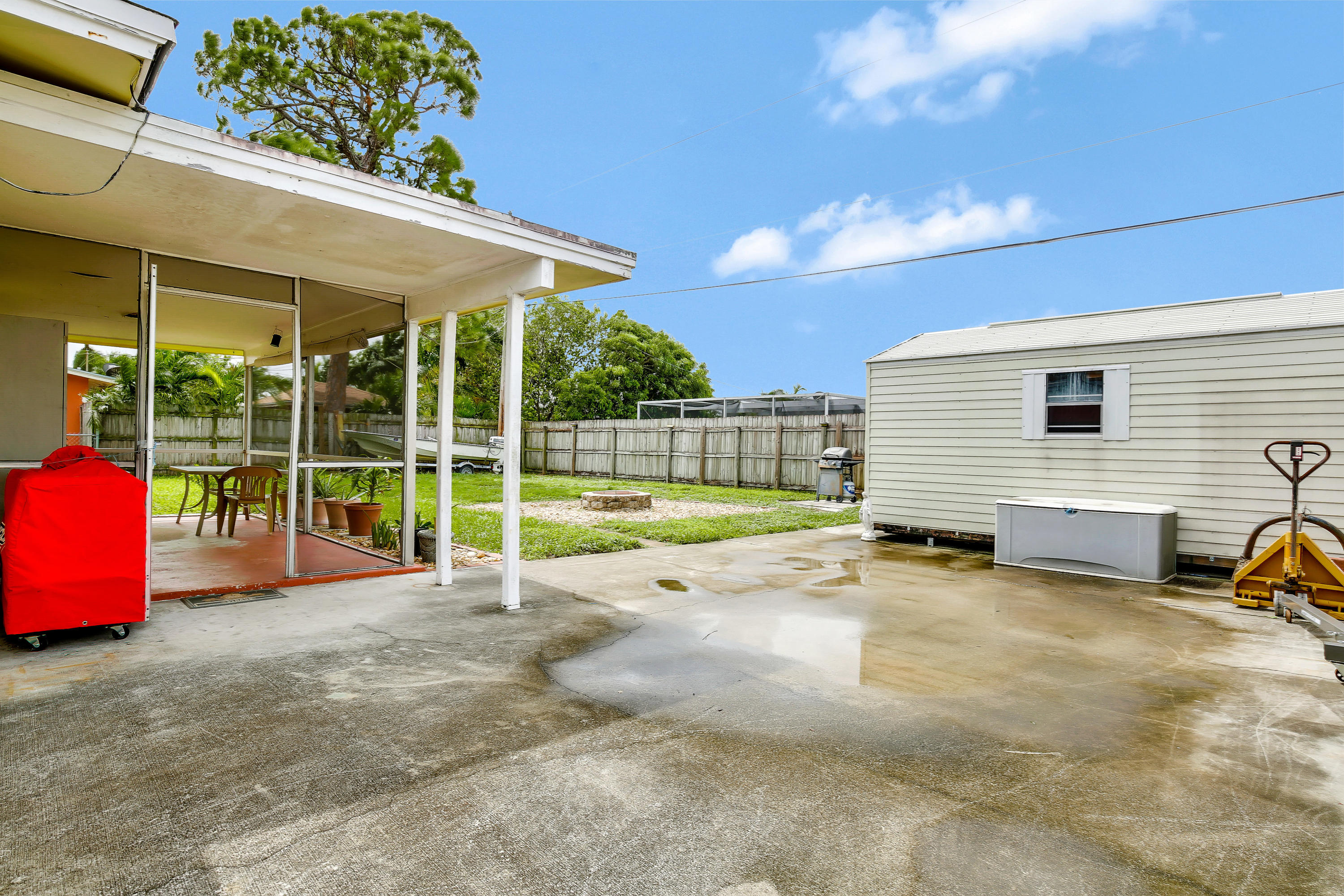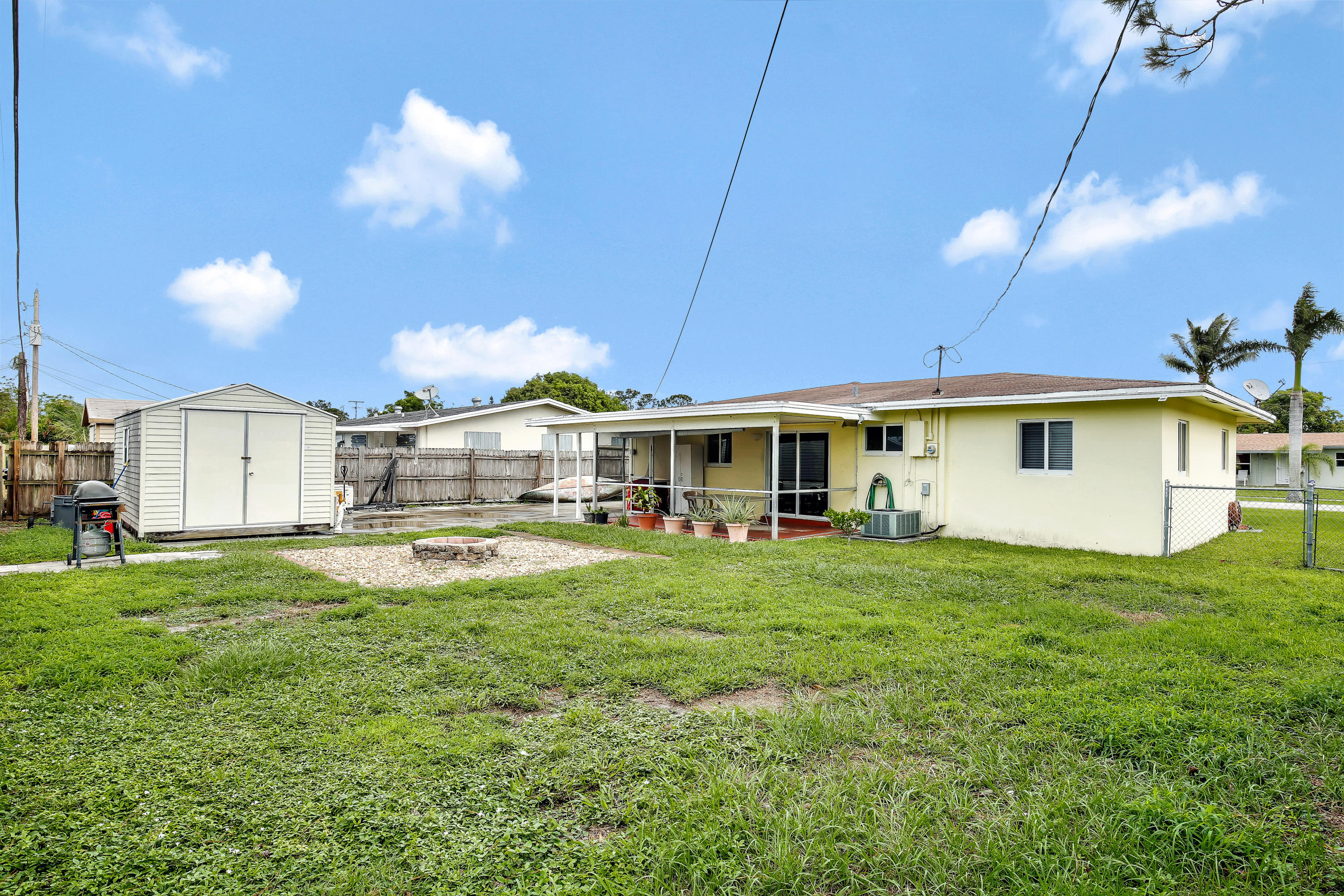 3/1 home, NO HOA! Bring your boat, your pick up truck, a work van & park them in your drive way. Ex-large driveway that runs to the backyard. PGT Hurricane Impact Windows. Newer Roof & A/C Unit. Newer cabinets in the kitchen. Tile throughout the main living areas. Carpet in the bedrooms. The garage was turned into a 3rd room & was permitted. In place of the garage is a ''Man Cave'', a shed out back. It's a work shed or it can be used for extra storage, built to withstand hurricanes & bolted to the ground. Fenced in yard for the kids & pets. Built in fire pit for family gatherings.This home is located minutes from I-95, FL's Turnpike, Wellington, downtown West Palm Beach and 3 international airports.All room measurements are an approximate.