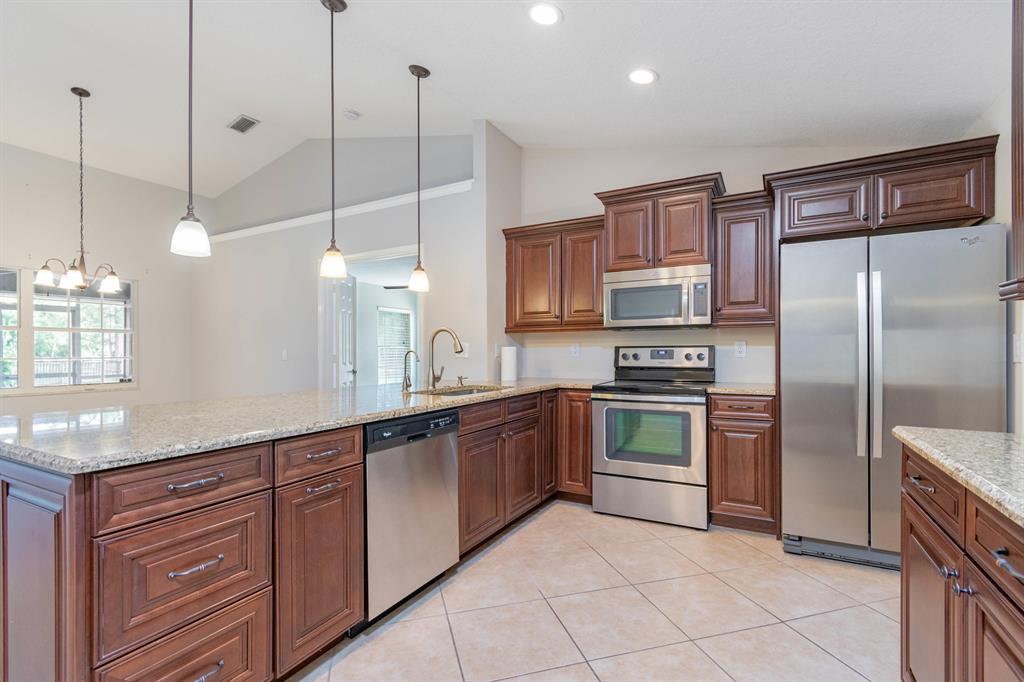 Ready now! This home is a must see. Designer kitchen with Granite counters. All stainless steel appliances. Updated bathrooms. Split bedroom plan. Porcelain tile on the diagonal. Rain shower head in master bath. Eco toilets. Perimeter lighting.Extra cabinets in the garage. Brand new side entry door. Pull down staircase. Newer garage door opener. Screened patio with slate decking, plus extra large pavered rear deck. Roof 7 years old. Electric tankless water heater. Newer A/C system. Reverse osmosis system. Exterior wiring for outdoor speakers. Comcast or Direct TV ready. ADT security system with GSM cellular backup with contacts on all windows and doors. Lot's of parking for RV, trailer, boat. Extra large brand new concrete driveway and landscaping. No pond. 3 culverts and 3 entry.