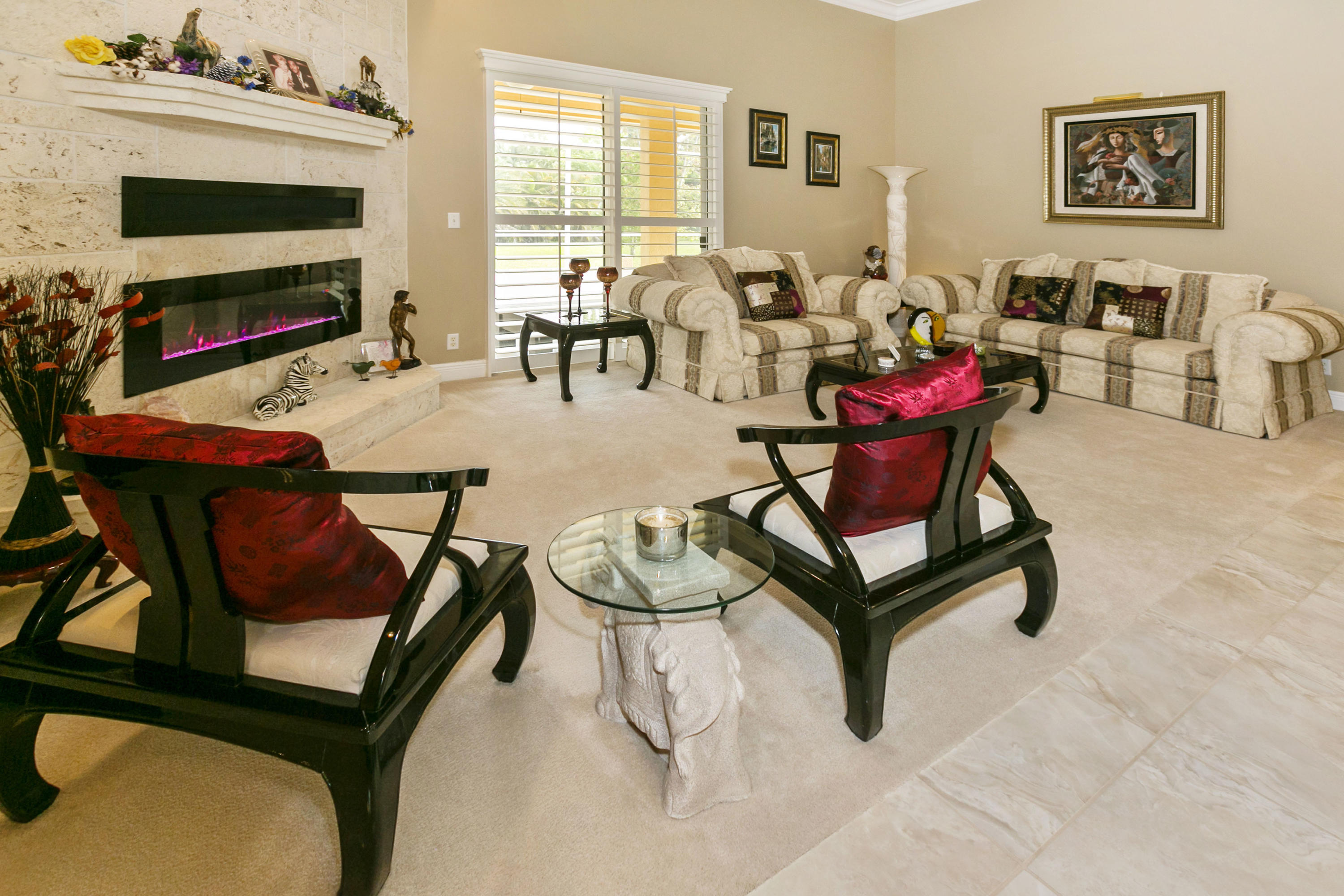 Escape reality as you open the gates and live life like you're in paradise in the 3/2 gorgeous freshly painted inside and outside home. This property has so much to offer: crown molding throughout, stainless steel appliances, wine cooler, bay window at eat in kitchen area, customized walk-in closet and frameless shower in master bedroom. The formal living area has a coral reef wall which has a color changing LED fireplace and a 12' ledge for sound system. As you step outside the sliding doors to the extended screened in patio, enjoy nature as you see the landscaping and the fruit trees. As evening approaches the lights that reflect onto the property make this home one of a kind and a MUST have.
