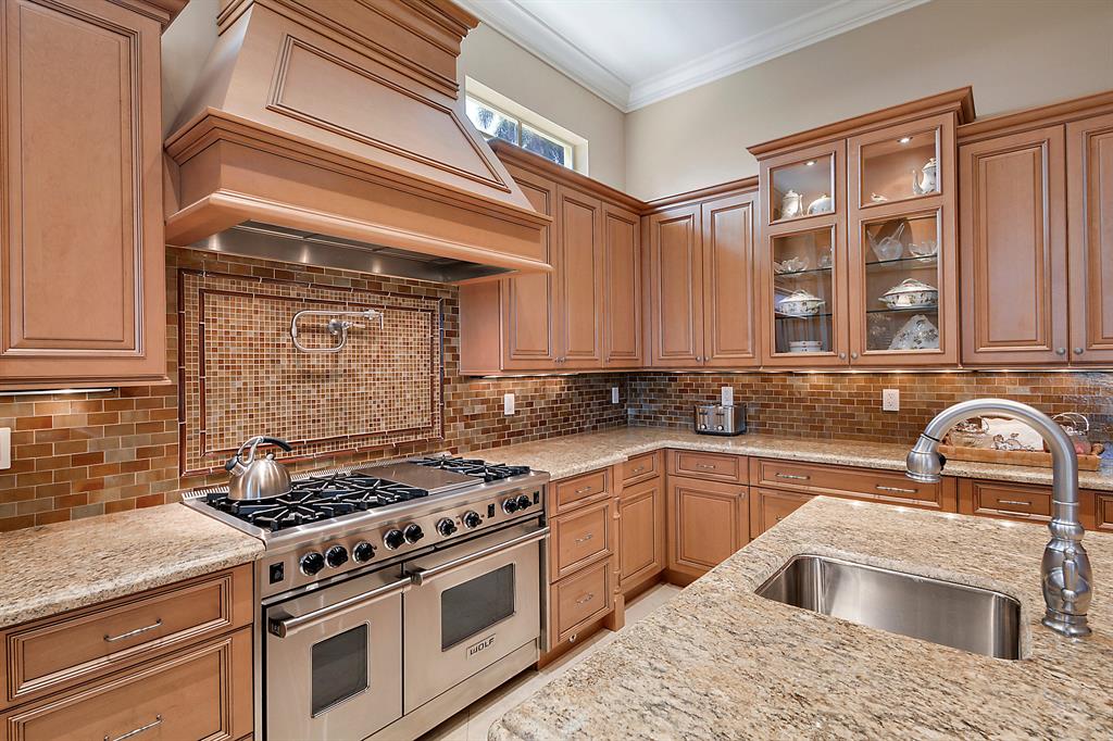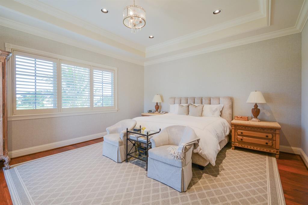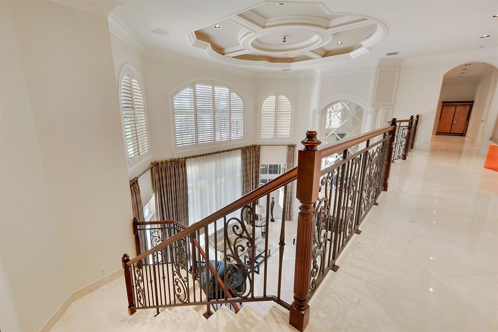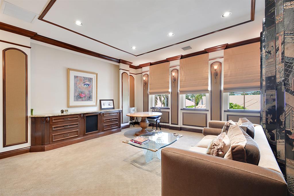 The epitome of sophistication and elegance, this beautiful classic Palm Beach inspired estate features a formal living room, dining room and gourmet chef's kitchen, breakfast room and large family room all designed for effortless entertaining or casual living. The master wing includes a grand master suite with luxurious his and her marble baths, generous closets and customized wood paneled library. An additional guest suite is located on main floor. Four en suite guest bedrooms, a home theatre and loft area, and additional laundry are on the second floor. An outdoor entertainment area is lushly landscaped with breathtaking panoramic golf course vistas and features a resort style pool, covered loggia and summer kitchen. Other amenities include hurricane resistant windows and doors,