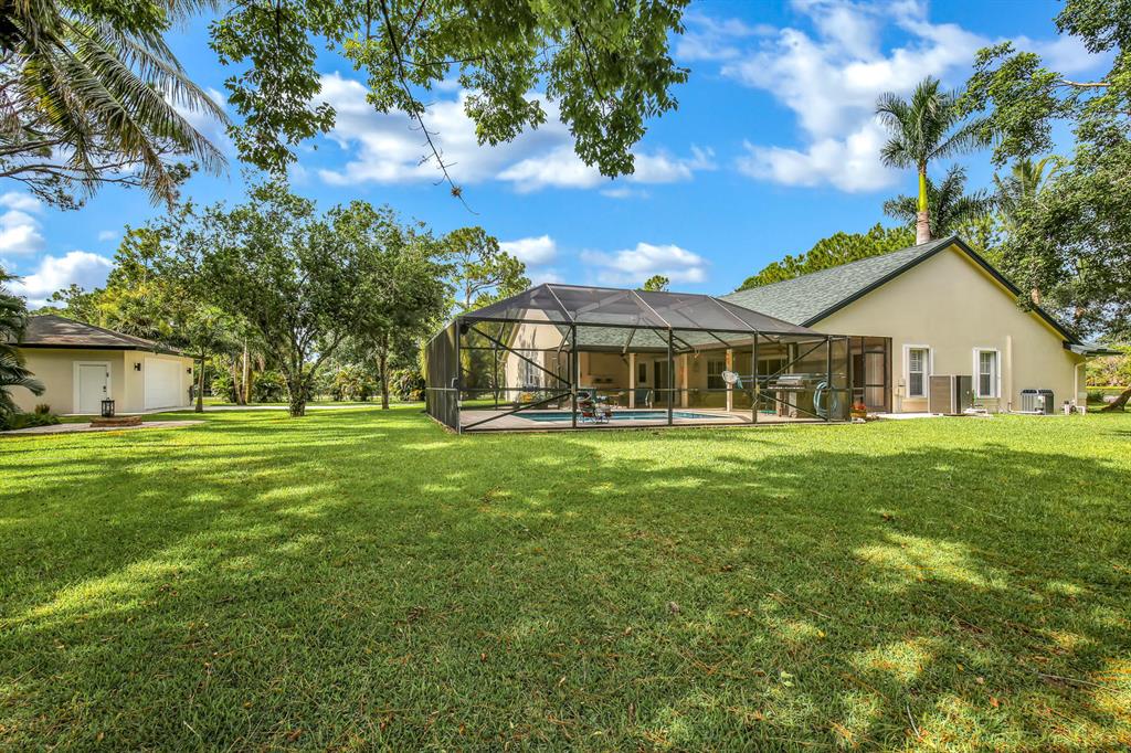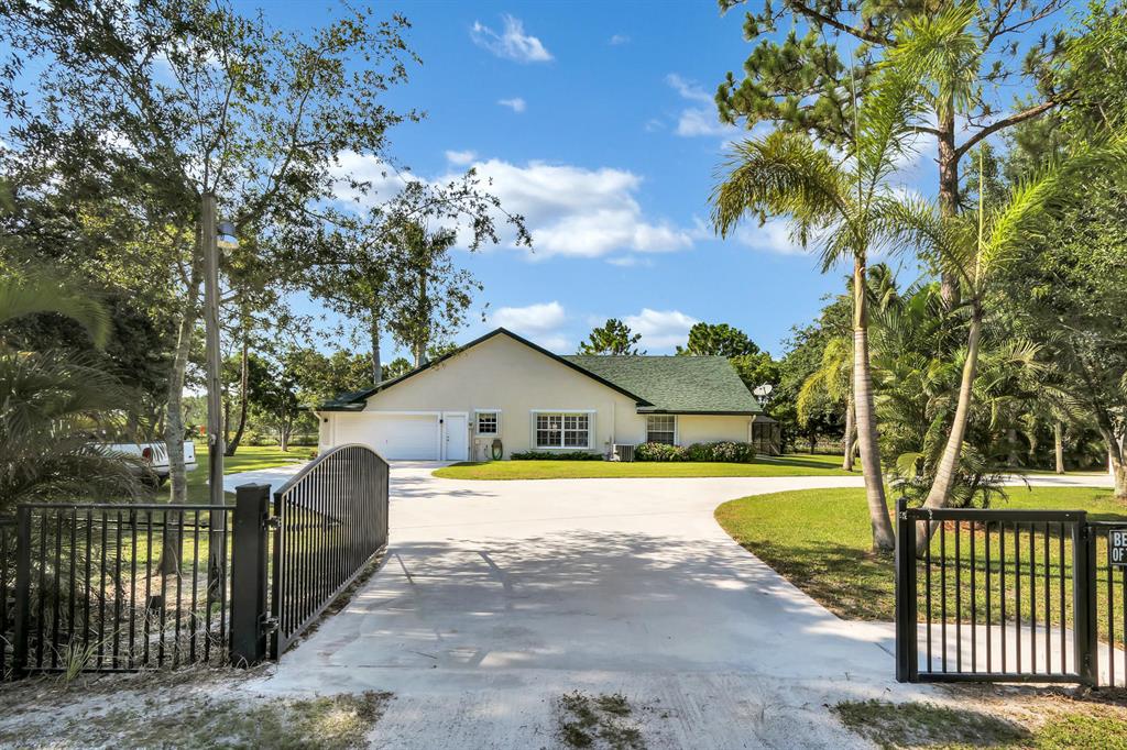Completely remodeled 3BR / 2BA CBS home, sitting on just under 2.5 acres in The Acreage! Beautiful open kitchen equipped with GE Monogram appliances & Wet Bar. Stunning Master Suite with large walk-in closet and newly renovated Master Bath. Both AC units replaced in 2015 & 2017. New pool equipment, pump & heater- converted to a Salt Water System in 2016. Main House and Boat Garage roof both replaced in 2017. Property boasts a 30 x 30 Detached Garage & Boat Garage, fully fenced in and surrounded by lush landscaping. Entire property is completed fenced in & equipped with an irrigation system. Perfect for entertaining!