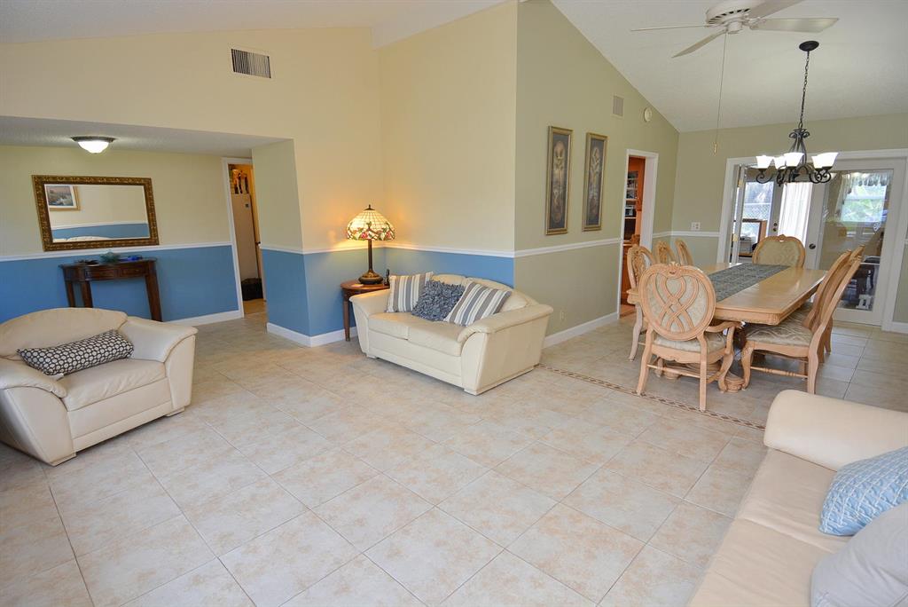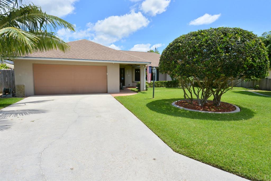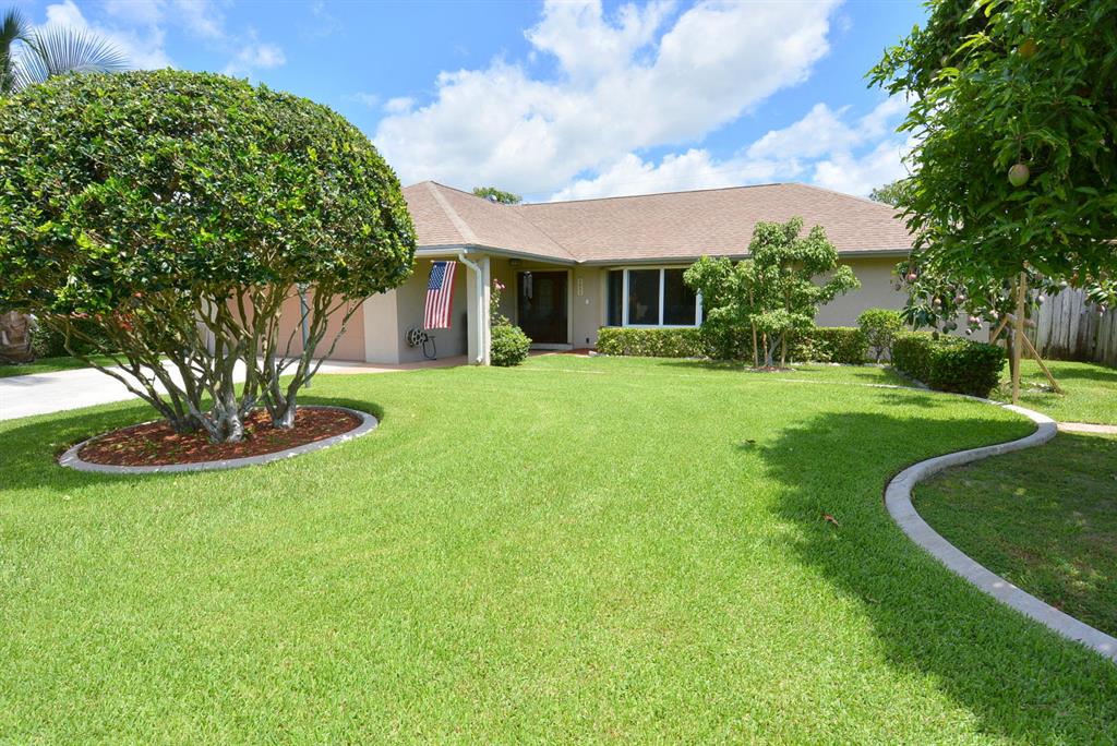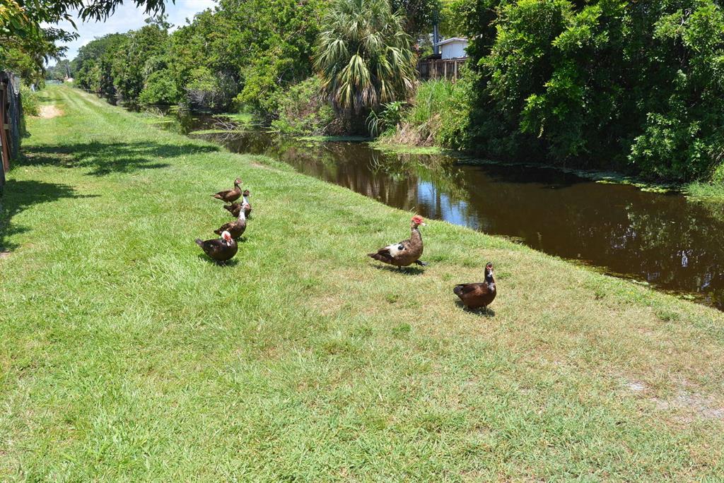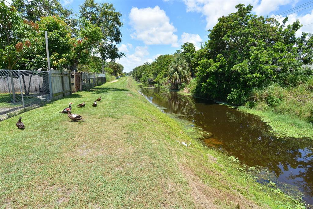EXCEPTIONAL value in Great, quiet, well maintained neighborhood with mature trees. Superb curb appeal. Move in condition.Fenced in yard overlooking canal out the back with resident ducks.Mature fruit trees.Very large BONUS room with built-in shelving which easily can be another bedroom, game room, office. Beautiful floors throughout.Crown Moulding.Garage has finished flooring easy to maintain. Excellent unique cabinetry .The large open living room adjoins the dining area.Gorgeous view from front and rear windows.Just minutes to shopping,restaurants.close to downtown West Palm and airport. No HOA.Cul de Sac.
