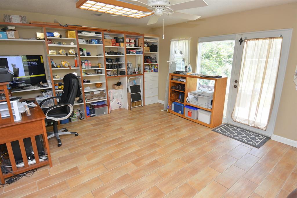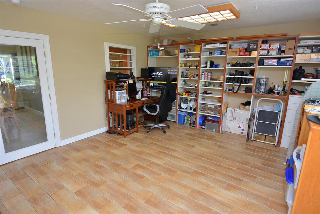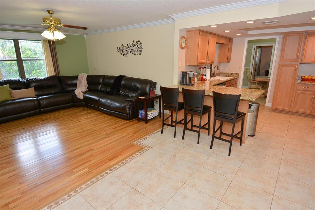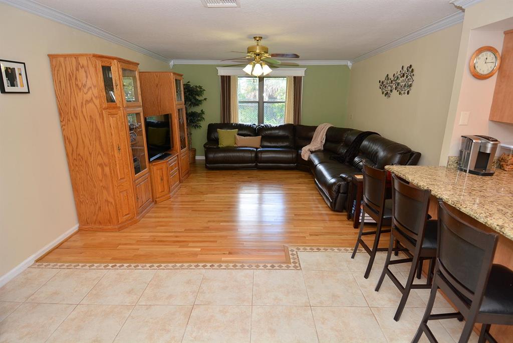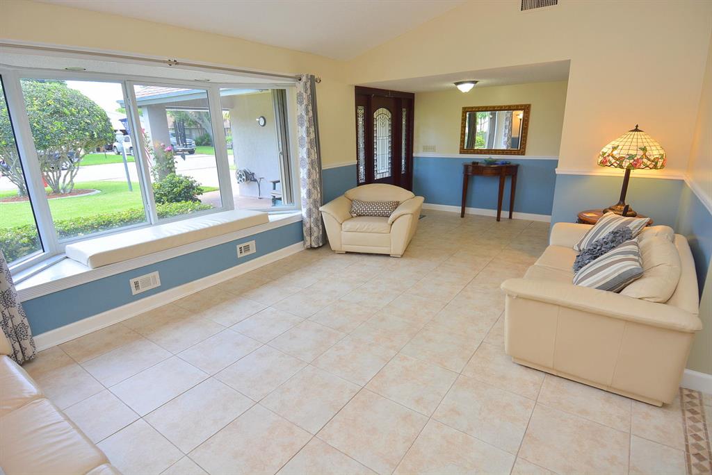 EXCEPTIONAL value in Great, quiet, well maintained neighborhood with mature trees. Superb curb appeal. Move in condition.Fenced in yard overlooking canal out the back with resident ducks.Mature fruit trees.Very large BONUS room with built-in shelving which easily can be another bedroom, game room, office. Beautiful floors throughout.Crown Moulding.Garage has finished flooring easy to maintain. Excellent unique cabinetry .The large open living room adjoins the dining area.Gorgeous view from front and rear windows.Just minutes to shopping,restaurants.close to downtown West Palm and airport. No HOA.Cul de Sac.