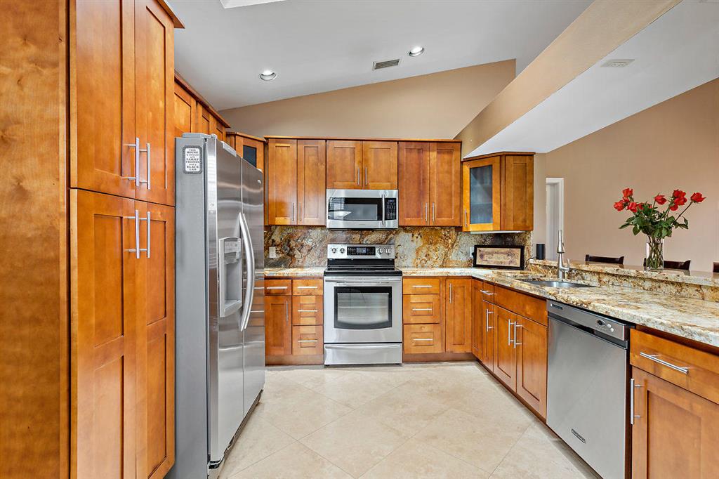 Rare opportunity to own this exquisite corner pool home in a quite,gated community. As soon as you open the front door you will be in awe of the wide open floorplan featuring vaulted ceilings and an abundance of natural light brightening this tastefully finished custom home. As you navigate through you will notice the 42 inch custom cabinets in the kitchen with super high end granite counters. The bathrooms feature gorgeous vanities with great neutral tones. The bedrooms are quite large and the third can be left as an office/den, or used as a perfect space for when guests visit. Once you step out to the backyard you will feel like you are in a tropical oasis. The pool is immaculate and features water accents setting a great vibe. The yard is massive and professionally landscaped.