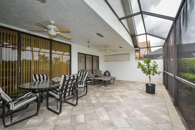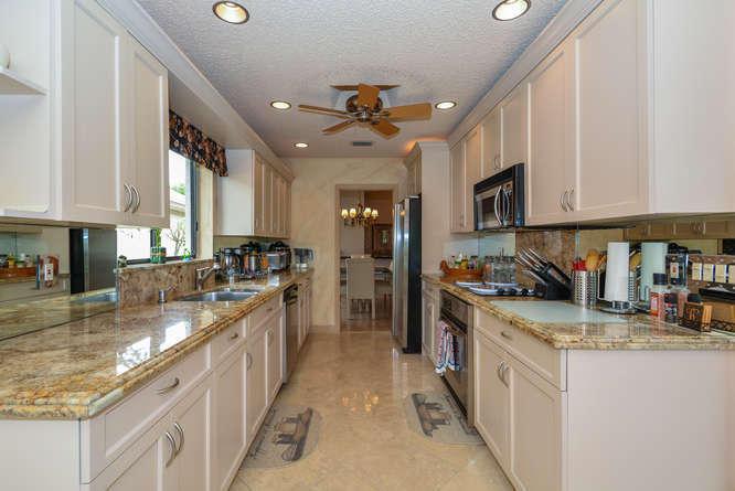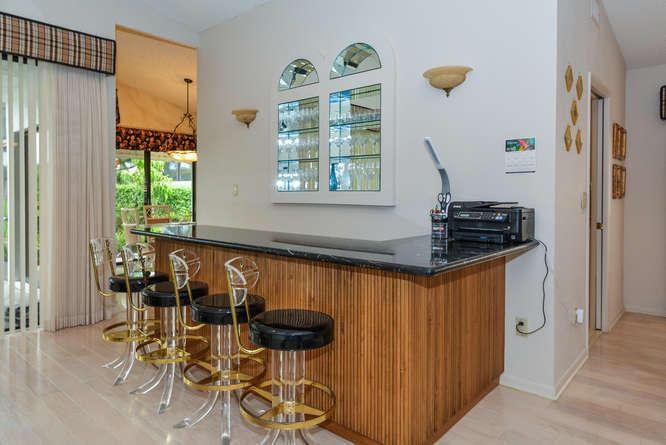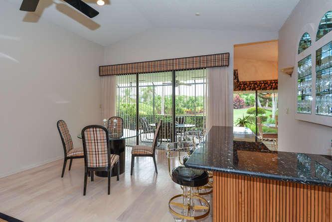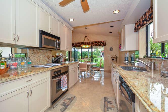 Beautifully renovated 2-bedroom 2-bath plus den single family home located in the all age community of Boca Woods. This home is move in ready and it is immaculate! There are wood floors through much of the house and laundry room is inside. Granite counters in the kitchen and bathrooms; stainless steel appliances are just a few years old; beautiful built-ins. Enclosed patio with golf and water views. High vaulted ceilings and split bedroom plan. Many upgrades - see attached document for a full list. A full country club membership is required; $30,000 equity which is refundable when the home is sold and $30,000 non-refundable initiation fee. The dues are currently