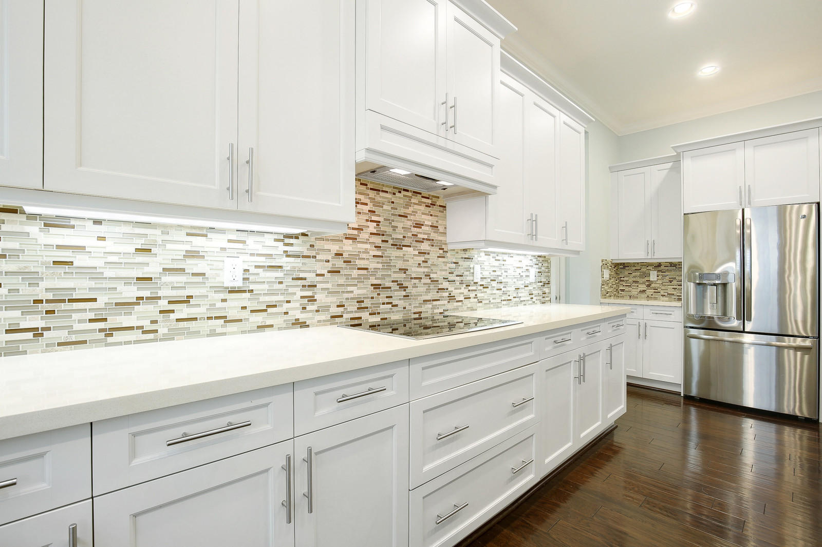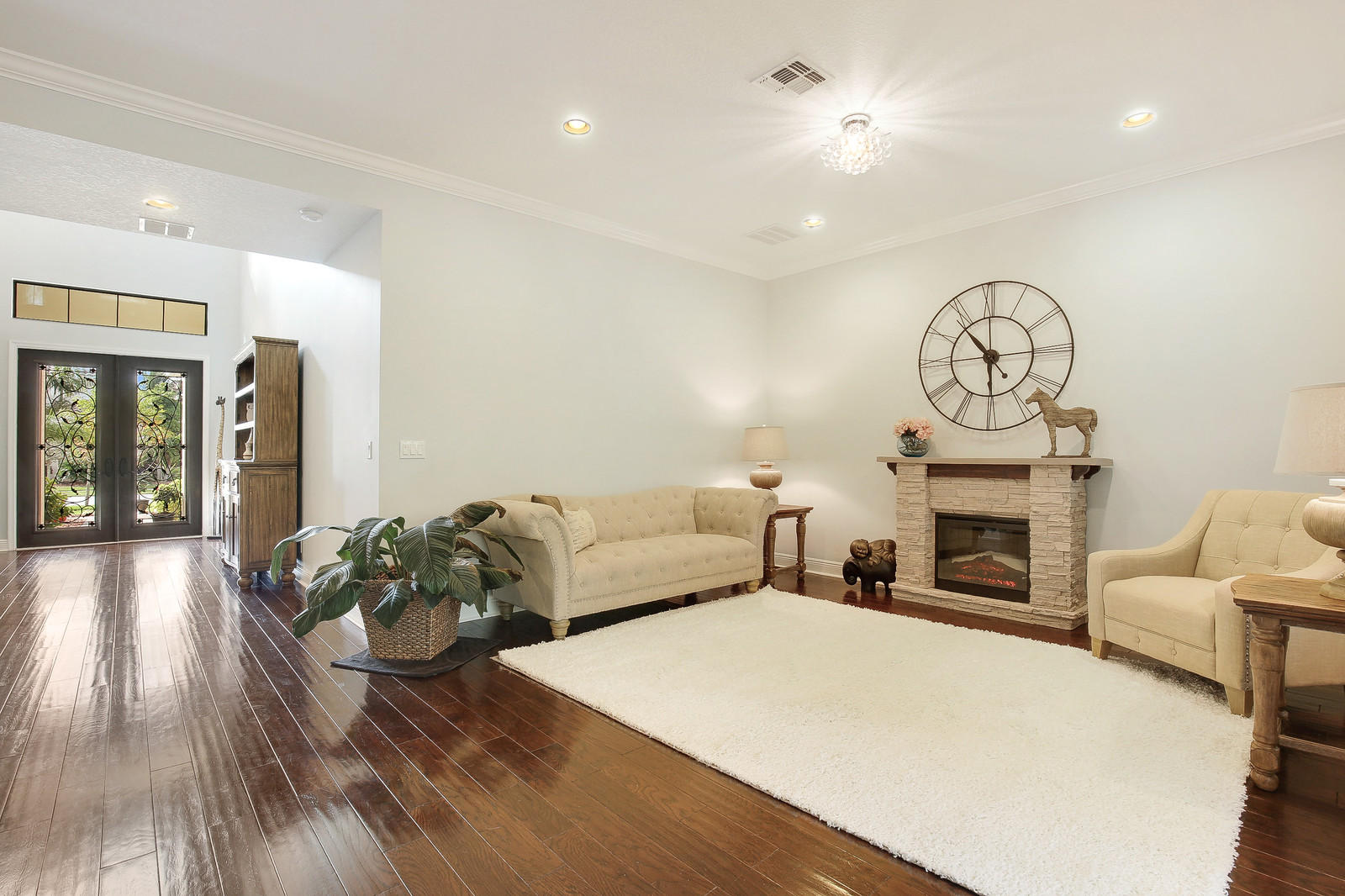 BETTER than new-shows like a model! Private, hedged & fenced lot. Glass & wood double front entry opens to a 2 story foyer w/grand winding wrought iron staircase. Real wood floors in living areas, Master Suite + sitting room. New carpet in bedrooms. Dream kitchen w/white shaker style cabinets, quartz counters, glass tile backsplash, center island/breakfast bar,Butler's pantry plus stainless steel French door refrigerator,double oven, dishwasher & built-in microwave. There are two bedrooms sharing a bathroom downstairs. Screened porch w/pavers & a spa perfect for relaxing after a long day. Peaceful backyard w/room for pool if desired. The elegant master suite on 2nd floor has 13'x14' sitting room,2 oversized walk-in closets, luxurious bathroom w/double sinks,soaking tub + separate shower.