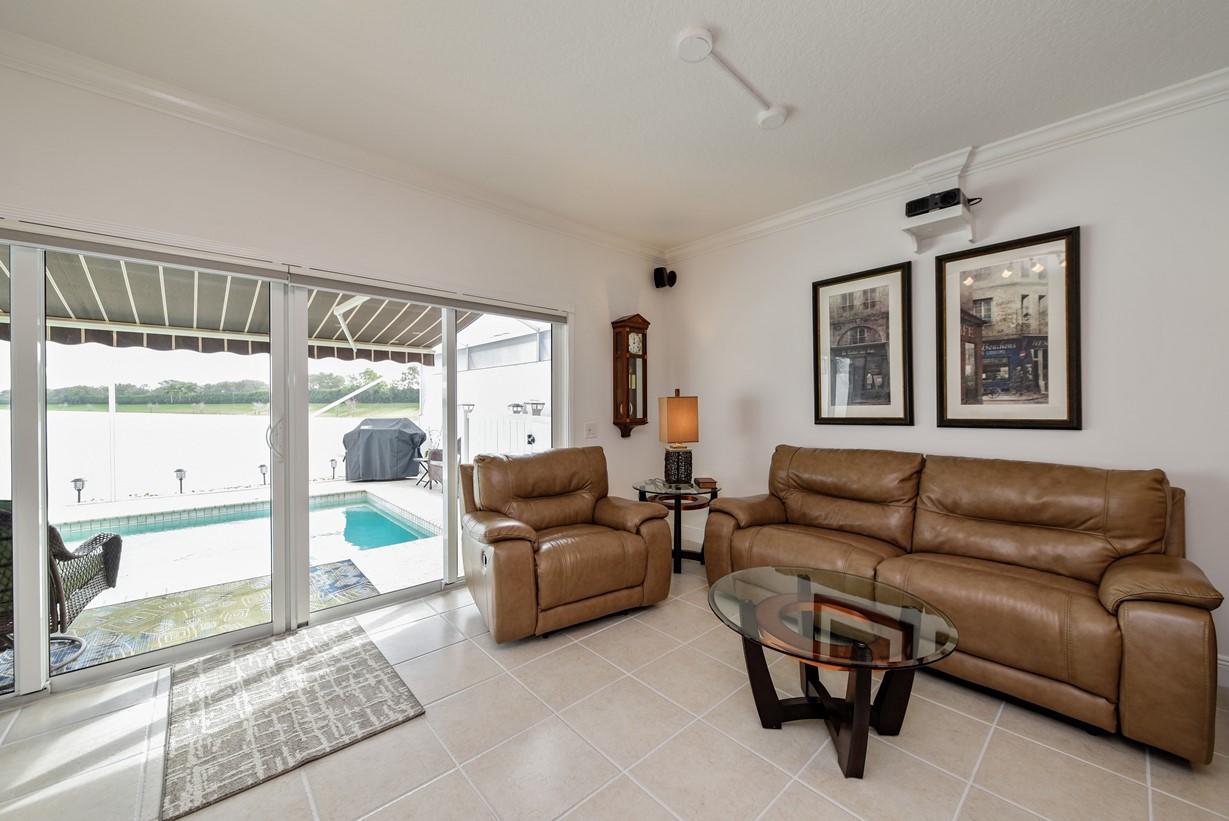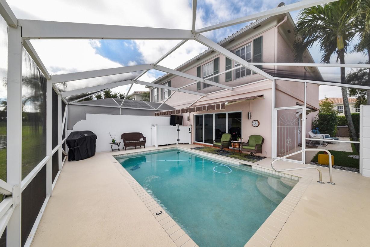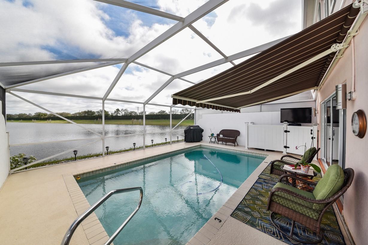 This Unique, Immaculate Newport Model in Riverwalk, a 24 Hour Gated Community, in One of the Most Convenient Locations in Palm Beach County, has so many A+ Features that it Qualifies for the Honor Roll of RiverWalk's Best Homes! The Site, One of the Most Spectacular Lakeside Lots with an Unobstructed Lake Views that go On & On! The Caged Heated Pool(the Heater is 1 year old) with That View & an Electric Awning! The Extra Wide Lot, A One of a Kind Lush Private Fenced Courtyard Entrance with A Gorgeous Privet/Hedge that Creates a Sense of Seclusion that is Rarely Found! The Updates: The Windows, Sliding Glass Door & a New Leaded Glass Door are HURRICANE IMPACT, The Trane HVAC & Rheem Hot Water Tank are just 6 Years Old & The Entire House has Newer 16 Inch Ceramic Tile Floors! The Kitchen