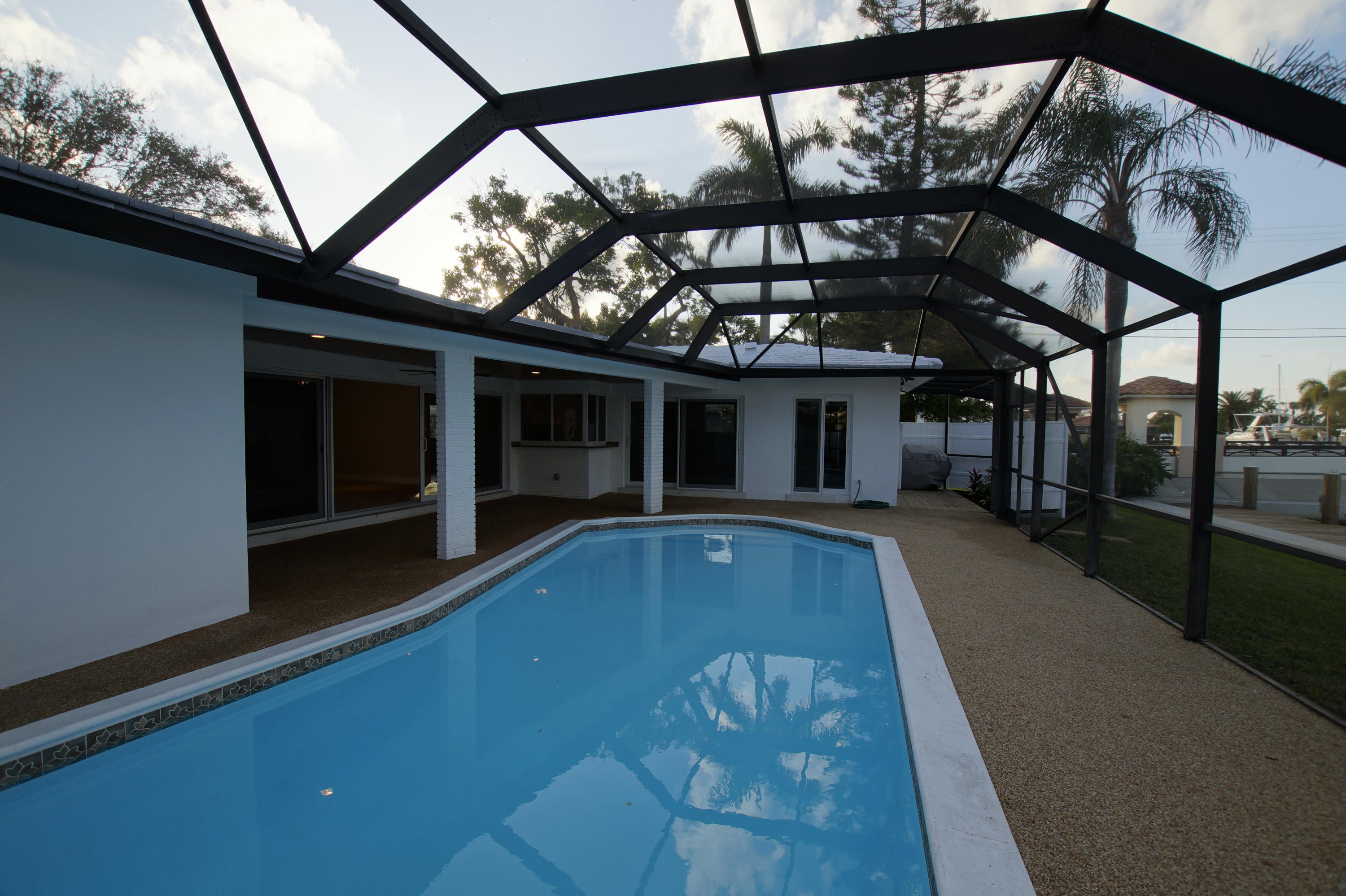 This intracoastal waterfront single family home located in the desirable neighborhood of Harbor Village has been completely renovated and is waiting for its new owner. The property boasts 100 feet of dockage with deep water ocean access, no fixed bridges! Everything inside the house is brand new: Flooring, kitchen, bathrooms, appliances, impact glass windows and doors, A/C and water heater, all new electric. The exterior has a brand new fence, new 6 x 12 travertine marble paver driveway, screen enclosed pool area with electric heat pump heater, new bamboo ceiling in patio area with LED lights and ceiling fans. There is existing power to dock for a sizeable boat.