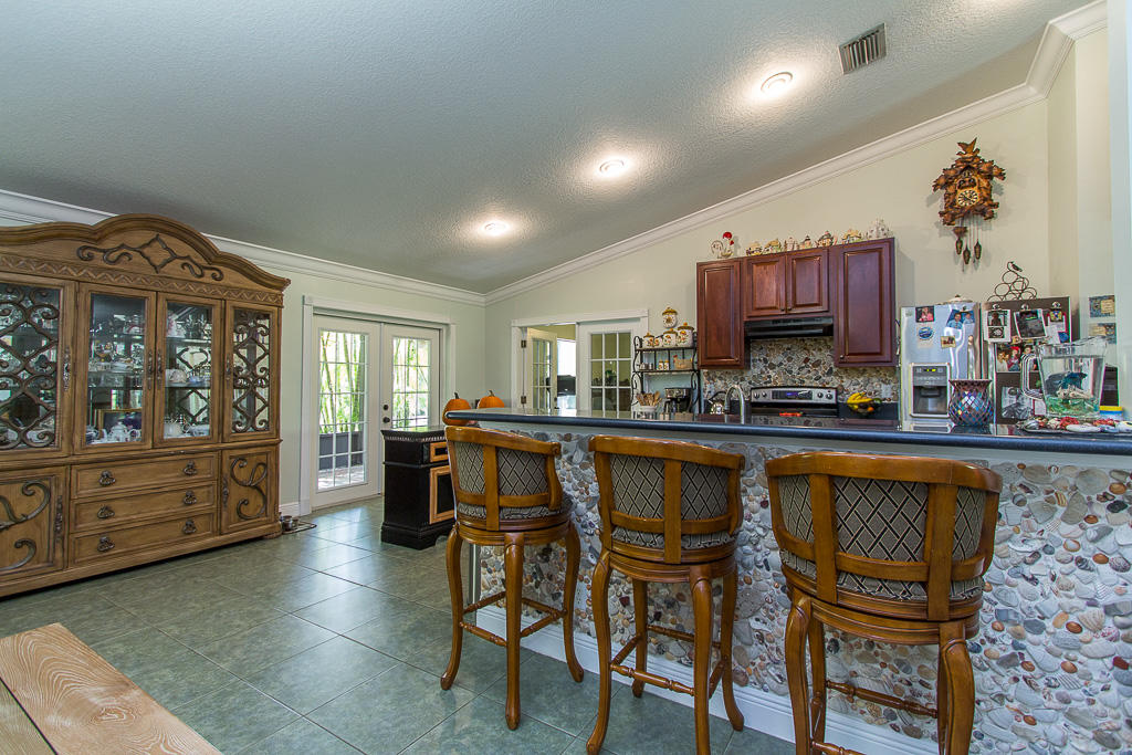 Absolutely amazing home with wonderful landscaping... on a paved road! Enjoy the gated approach to your home as you take in the barrel tile roof, lush privacy by the trees. Once you walk in, you will find tile and crown molding throughout the entire home! The kitchen bartop has river rock wall covering that ties in all of the colors as well as the stainless appliances, granite tops and wood cabinetry! The backyard with sprinkler system has a secluded and private patio and deck, or you can enjoy your covered and screened patio right from the main home. This is quiet, quaint charming living!