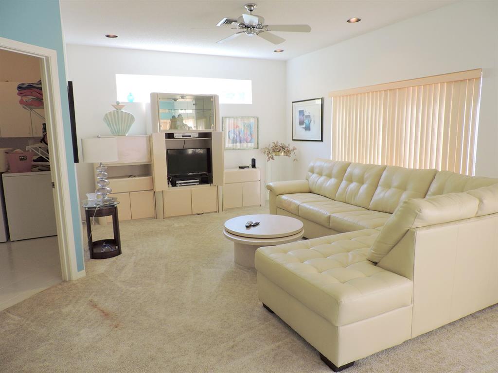 Lovely 4 bedroom 2 1/2 bath free standing condo w/ large family room off kitchen.Living ,dining ,kitchen ,laundry ,family & breakfast rooms on main floor + 1/2 bath + 1 car garage. 4 large bedrooms + 2 full bathrooms upstairs. Tranquil garden view from large screened patio. Short stroll to community pool. Boca Pointe is a Class A full service country club with many non-mandatory membership options , but not required.