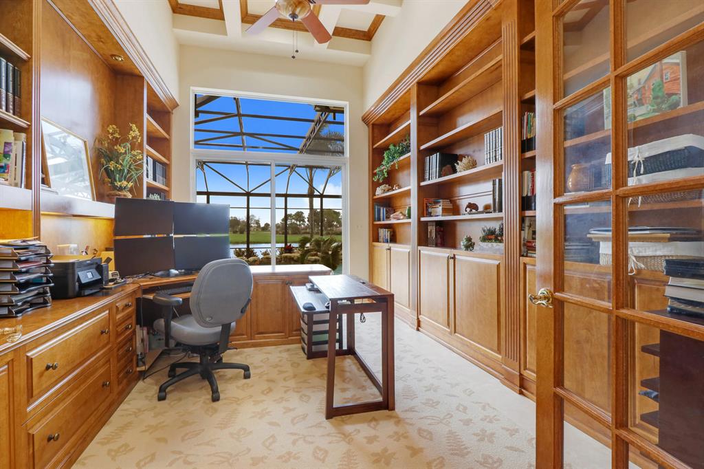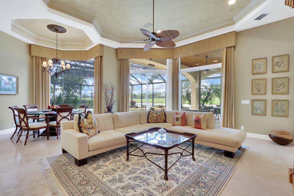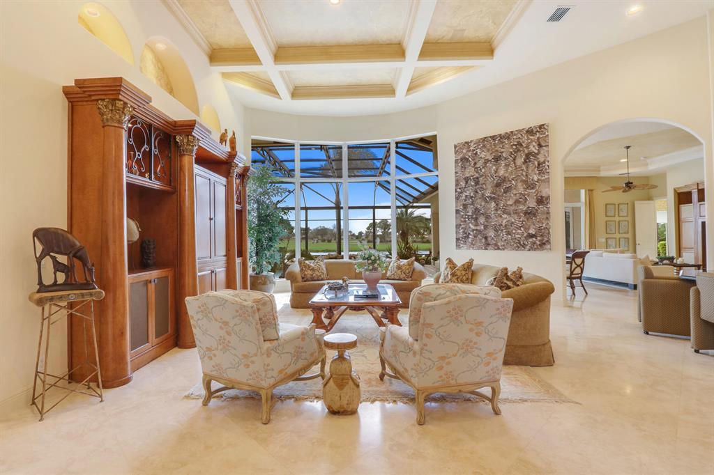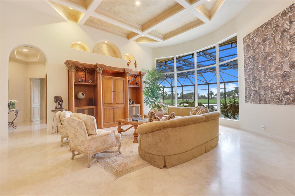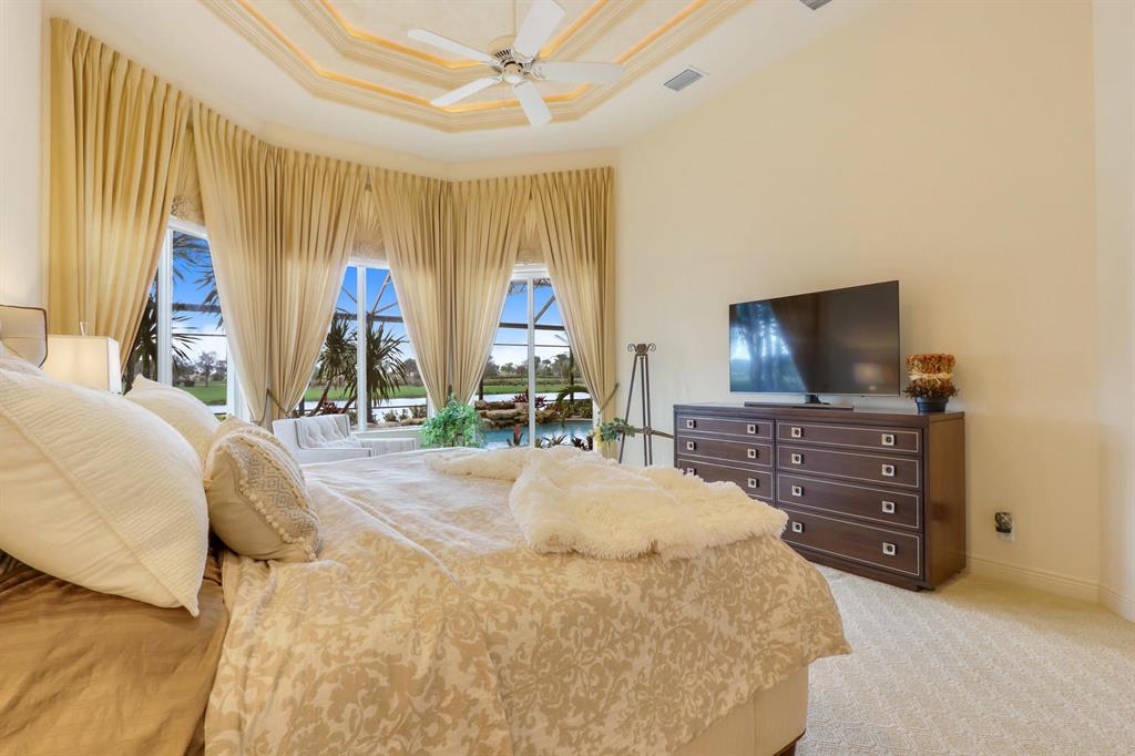One of the best water and golf views in Ibis! Coupled with a prime southern exposure, this custom Cribb estate boasts quality and craftsmanship in every corner. Incredibly upgraded and elegant 4BR/4.5BA+ Den home with Impact glass,full 3 car garage, a circular drive, marble floors with custom inlays,an elegant sit down bar,steam sauna in master bath, long water views, over sized pool and spa with multilevel patio,lush landscaping. In addition to being customized in soft neutral tones and immaculately maintained, it is offered at a remarkable price. Handsome wood doors greet you and as you enter. You will be impressed to see the expansive water views and all of the amenities that this home has to offer--beautiful faux ceilings in dining and living room, rope lighting in LR and MB.MORE....