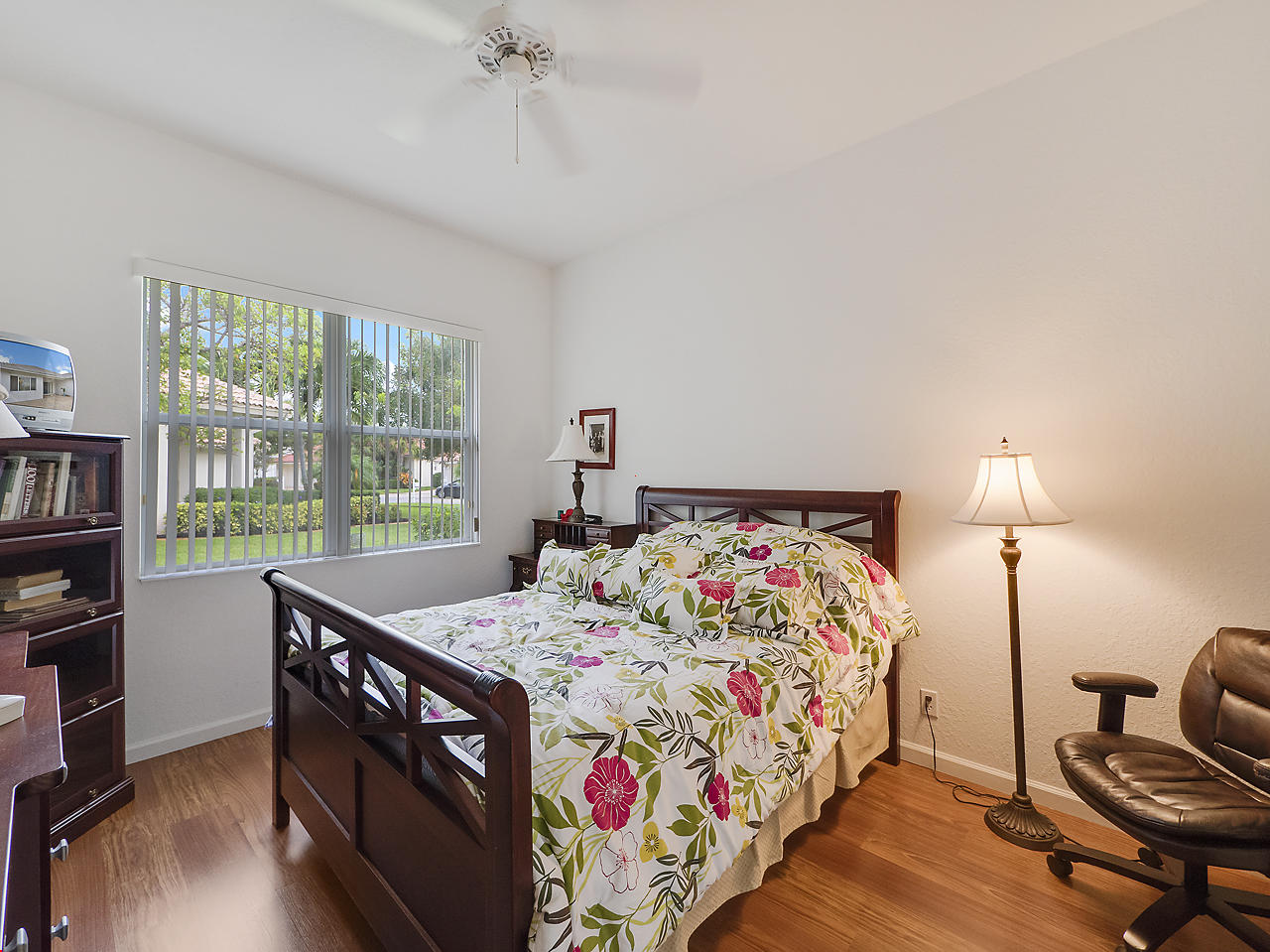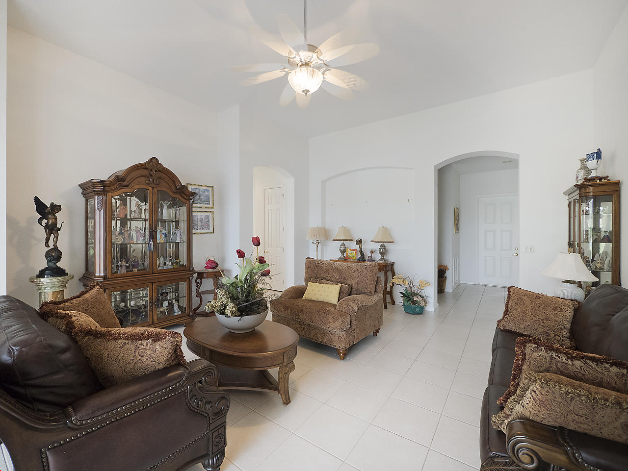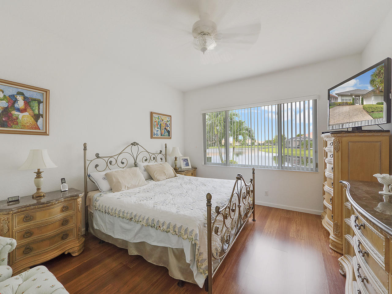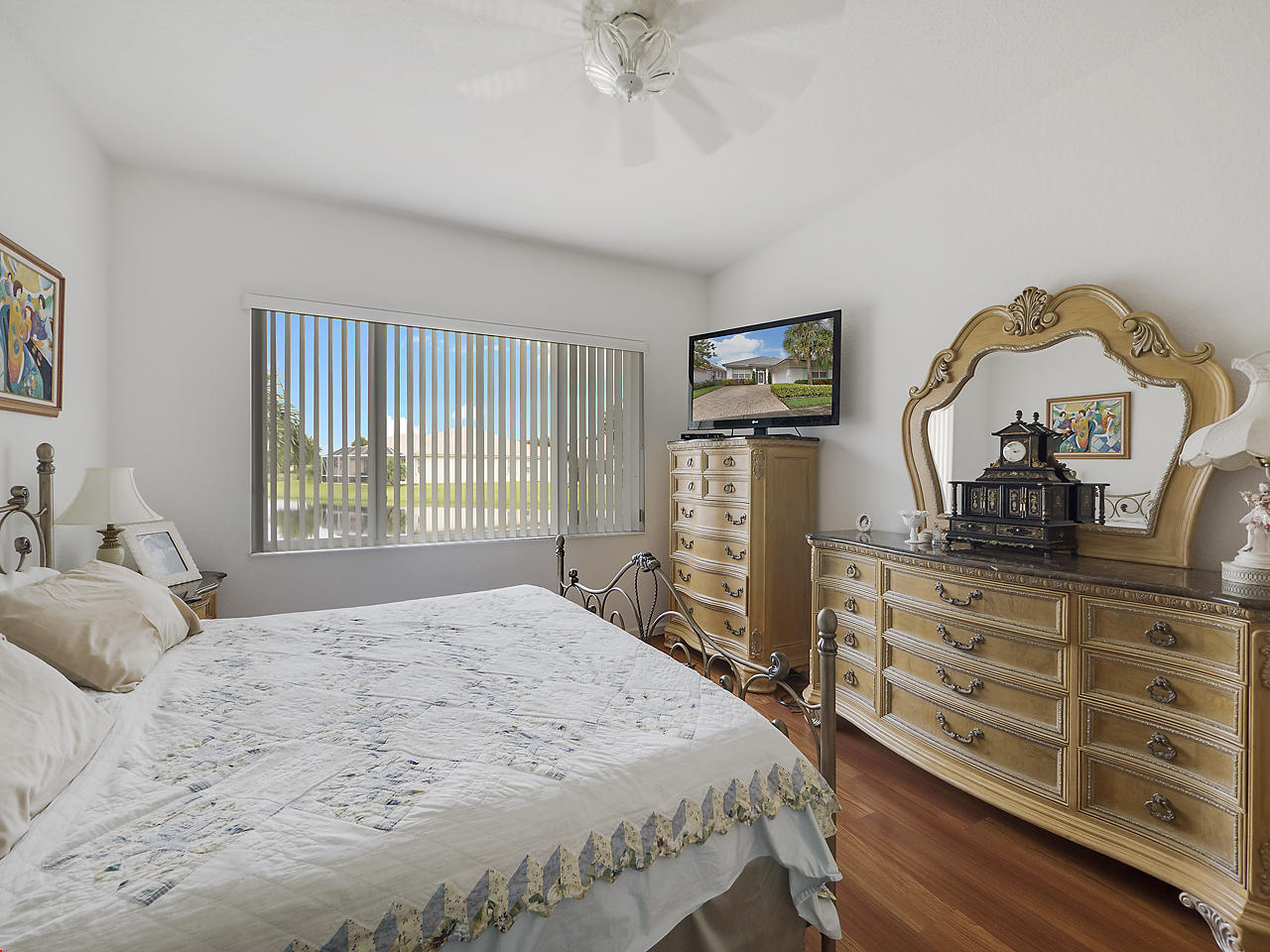 Beautiful home located in the highly desirable community of Baywinds! This 3 bedroom, 2 bath, 2 car garage Carlisle model is situated on serene, lakefront lot, and features tile flooring throughout the main areas of the home with laminate flooring found in the bedrooms, sizable eat-in kitchen with breakfast nook, and French door fridge. Generous master suite with two walk in closets, master bathroom featuring dual vanities and separate jacuzzi tub/shower, and pocked door for extra privacy. 12' Ceilings, and a nice, open floor plan. Baywinds is a premier 55+ community in South Florida and features wonderful clubhouse with tons of amenities and activities. Clubhouse features a card room, theatre, library, a kitchen for hosting events, exercise facilities, ballroom, and a meeting room,