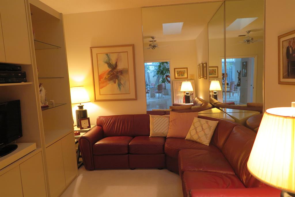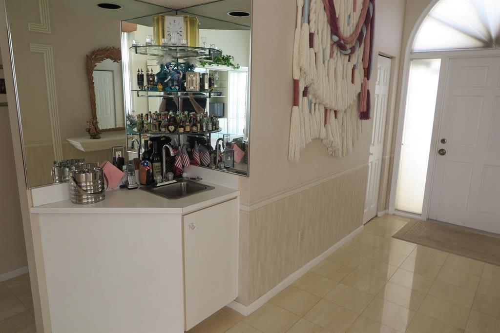 Charming and lovely home with neutral tones throughout. Excellent condition. Saturnia marble floor throughout living area. Wet bar in living room. Kitchen has granite counters. Lucite fans. Brand New washer and dryer. Beautiful lake views from master bedroom and patio. Partial lake view from living room. New roof, replaced in 2017. A/C replaced approximately 6 years ago. Third bedroom is used as den. Lots of closets throughout. Sliding glass doors off large kitchen to make BBQing very convenient. Membership optional.