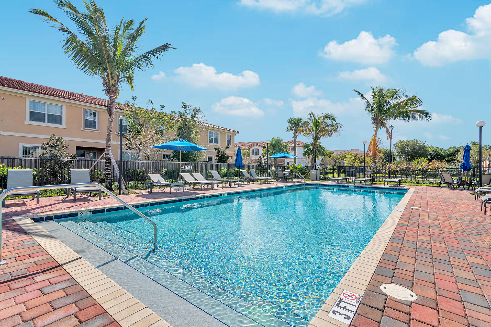 Luxury, like new, townhome in desirable gated community offering 3 bedrooms! As you approach you will notice the gorgeous paver driveway, lush landscaping and inviting entryway. Step inside and be wowed by spacious living areas, soaring 9 foot ceilings on both floors and lovely neutral tile throughout. The large kitchen boasts granite countertops, beautiful wood cabinetry and stainless steel appliances. Upstairs you will be greeted by the spacious bedrooms, the master suite is complete with a spacious master bath. Enjoy a great paver patio outside and lots of privacy with no neighbors behind you. You will love maintenance free living in this sophisticated community which offers its residents resort style amenities and is close to everything!