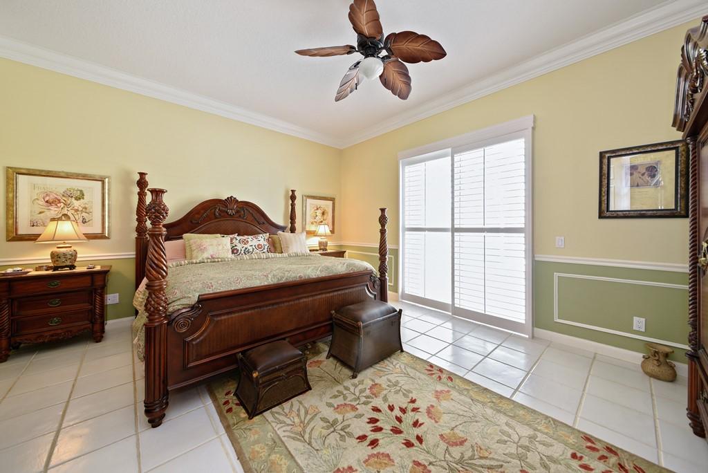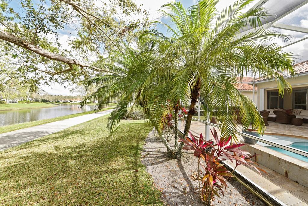 This stunning OAKMONT has it all & is set on a Gorgeous Oversized Cul de Sac Lakeside Lot with beautiful Lake Views & a Custom Caged Heated Pool! In RiverWalk, a 24 Hour Manned Gated Community that is 15-20 Minutes from Everything that makes Palm Beach County a Great Place to Live including the Ocean! The Screened Entry Leads to the Tile Foyer and Great Room with a Soaring 12 Ft. Ceiling, a Magnificent Dual Designer Fan, Plantation Shutters & the Dining Area with elegant wood Flooring! 18 Feet of Sliding Glass Doors Lead to the 22 Ft. Lanai that has Travertine Flooring which continues on to the Sun Deck Surrounding the Custom Heated Pool with a Raised area with Water Fountains Plus that Scenic Views of Green Space, Bridges & Azure Blue Lake Waters! There is a Secluded Patio off of