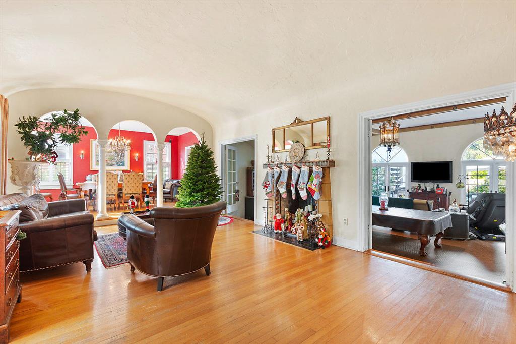 Authentic 20's Style! High Style Mediterranean Revival signature property in the Flamingo Park Historic District. Exquisite design including a grand ballroom between the two wings of the house. Middle of the house is the living room with ballroom behind. West section contains the dining room, kitchen and breakfast area with two en suite bedrooms on the second floor. The east section contains a half bath, two multi-purpose front rooms with a large en suite master behind. Upstairs is a large bedroom, bath and multi-purpose area. There is a guest cottage/efficiency, work shop and garage area. The yard contains a large pool with surrounding entertaining areas. High-end renovation workmanship and materials. Floor plan and features list are in MLS as Documents. Master chandelier may not convey.