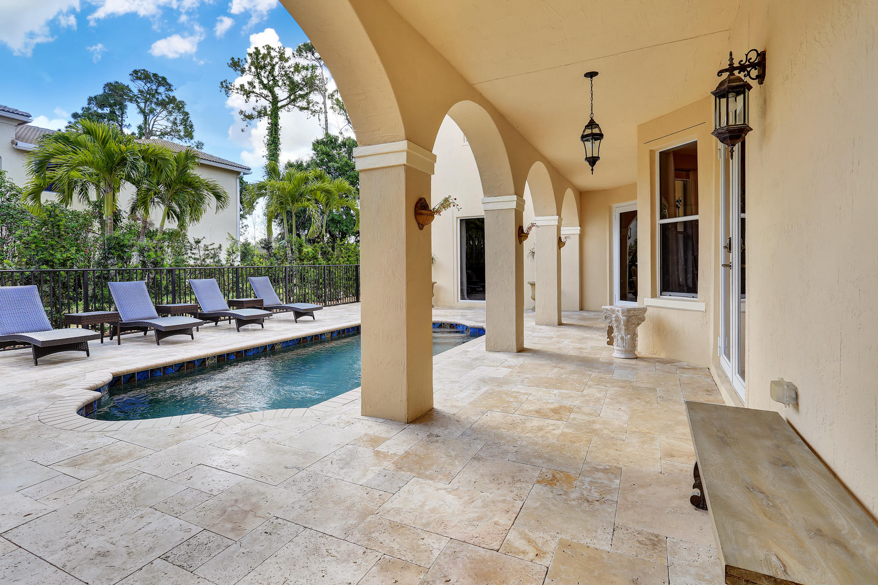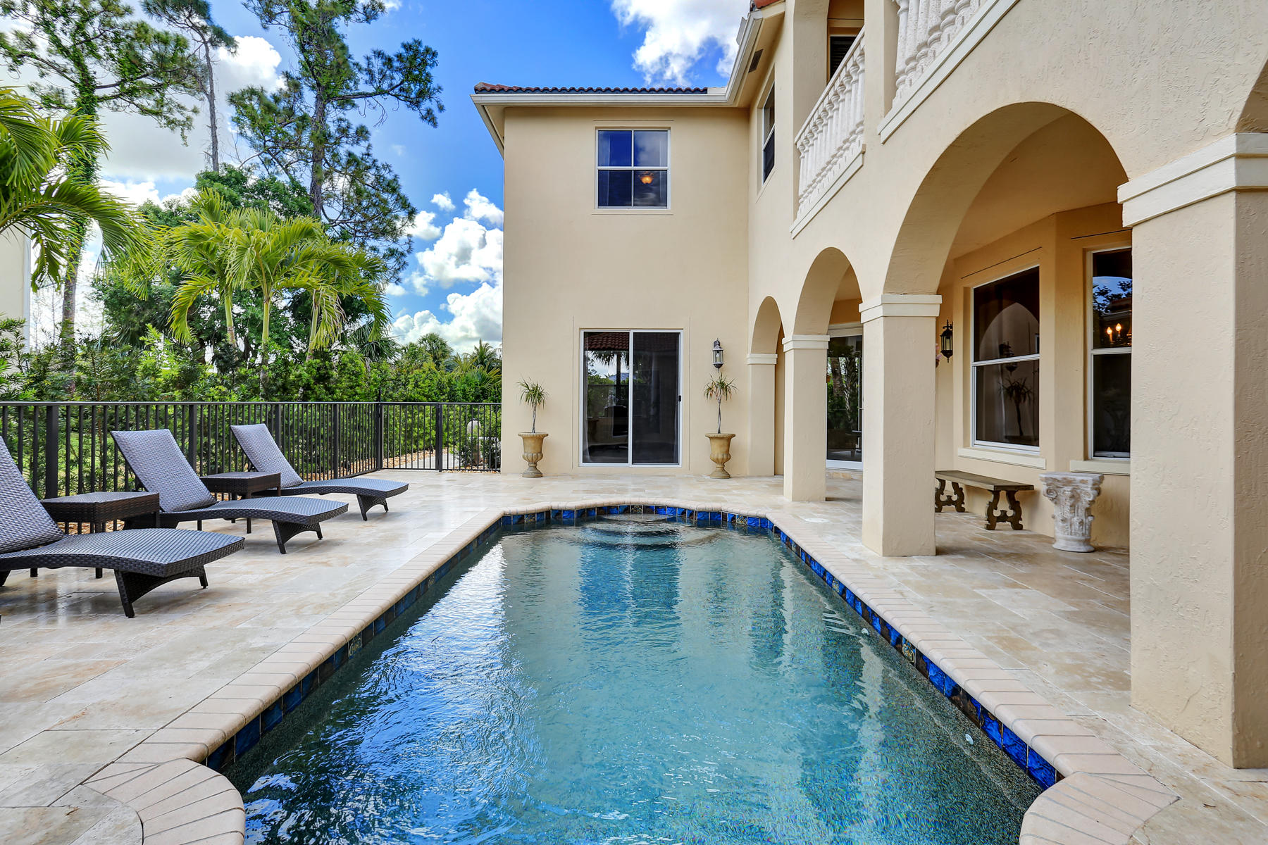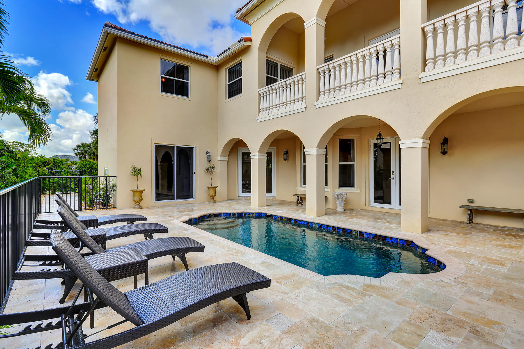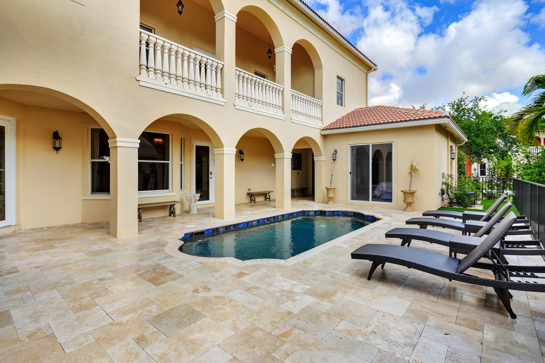 Enjoy the exquisite fusion of indoor and outdoor living in this model-perfect home with the salt-water pool and separate guest house! This spacious and bright 5 bedroom / 4 bath / 2 car garage home is located on one of the most desirable lots and features some amazing upgrades & stylish finishes. Oversized kitchen was upgraded with top-of-the-line stainless steel appliances in 2015, features the large kitchen island, stunning white cabinets and gorgeous granite counter tops. It is perfect for entertaining and is conveniently located next to the formal dining room. Master suite's space and its colonial style balcony are incredible, and custom built walk-in closets are just a dream! Master bathroom offers dual sinks, roman tub, and a separate glass door shower. Spacious den located on the