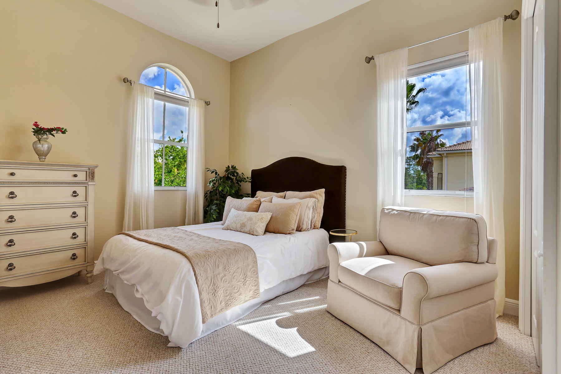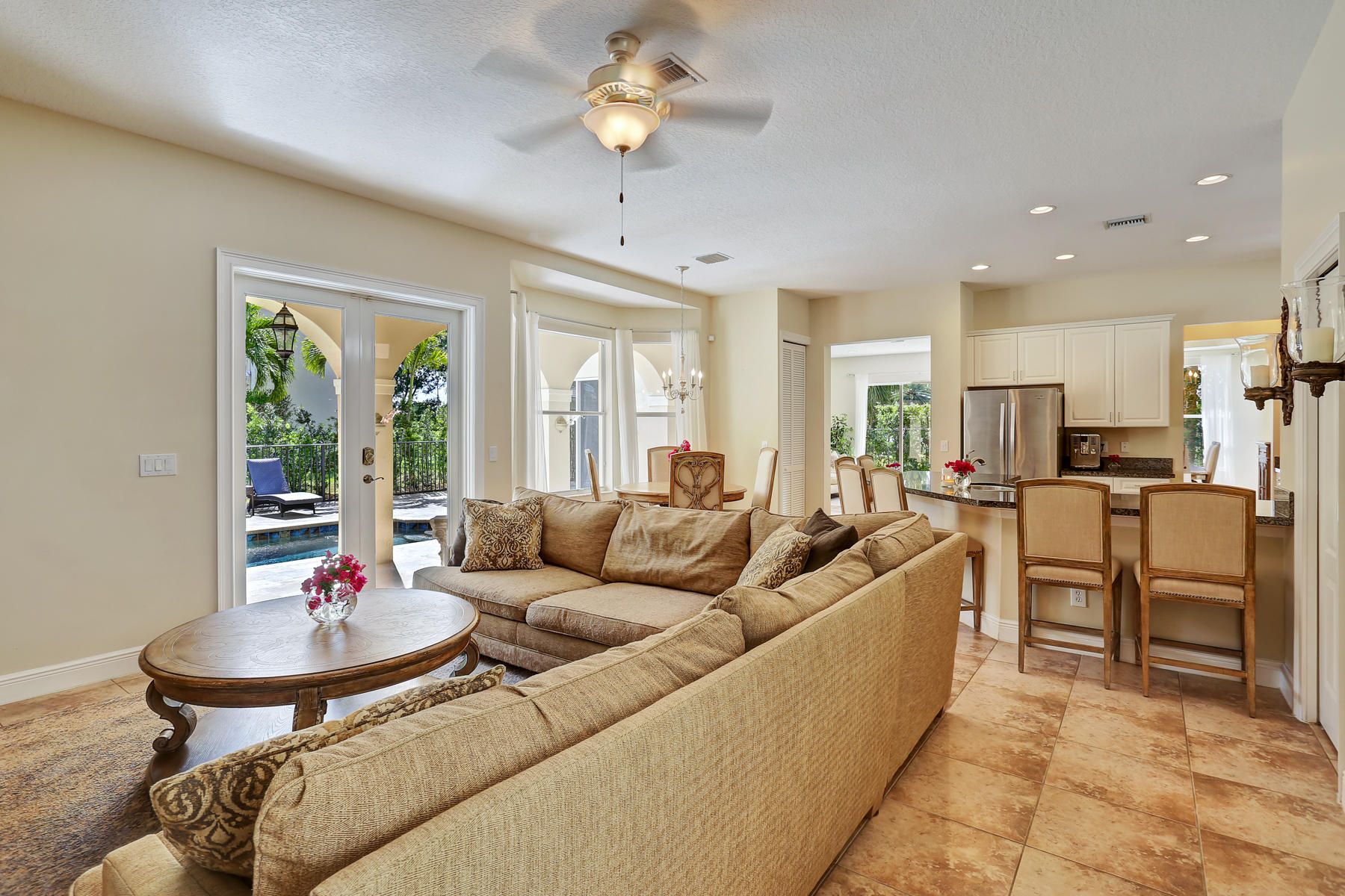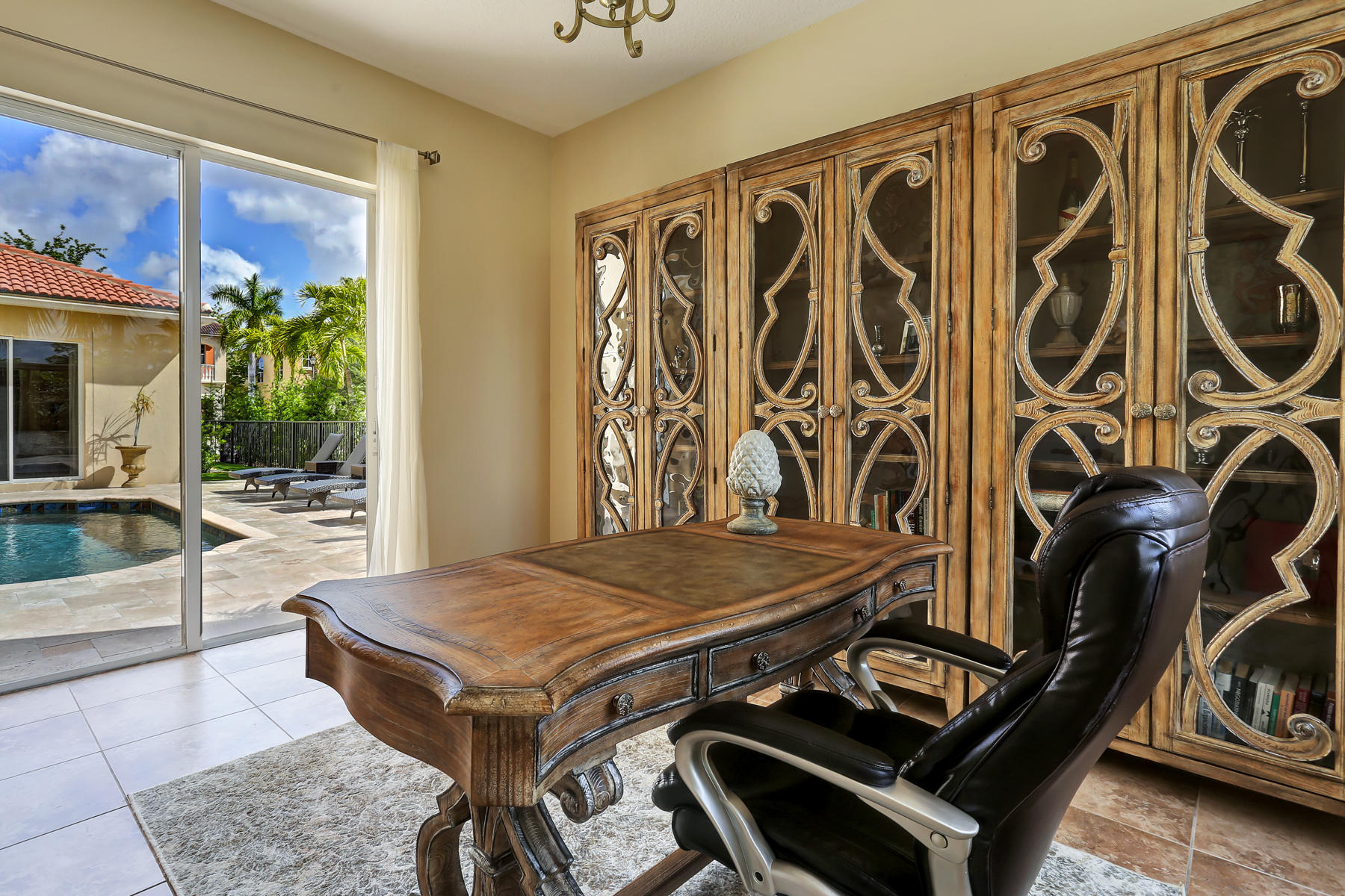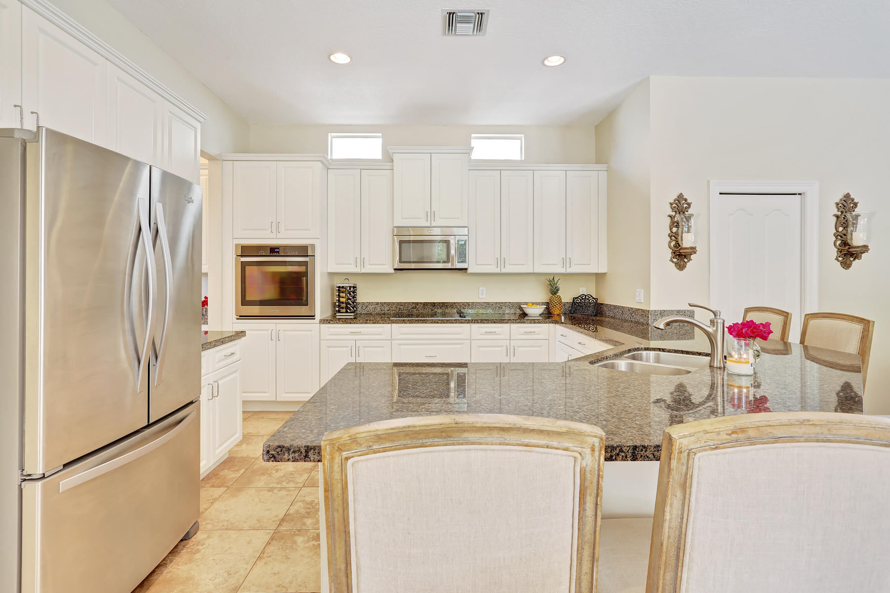 Enjoy the exquisite fusion of indoor and outdoor living in this model-perfect home with the salt-water pool and separate guest house! This spacious and bright 5 bedroom / 4 bath / 2 car garage home is located on one of the most desirable lots and features some amazing upgrades & stylish finishes. Oversized kitchen was upgraded with top-of-the-line stainless steel appliances in 2015, features the large kitchen island, stunning white cabinets and gorgeous granite counter tops. It is perfect for entertaining and is conveniently located next to the formal dining room. Master suite's space and its colonial style balcony are incredible, and custom built walk-in closets are just a dream! Master bathroom offers dual sinks, roman tub, and a separate glass door shower. Spacious den located on the