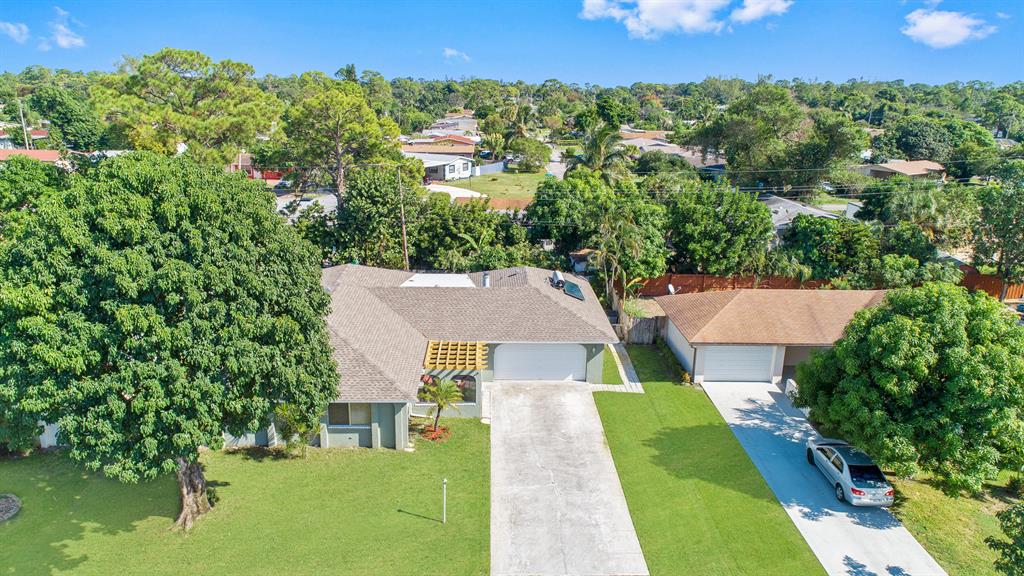 Over 2,200 square foot home in the desirable family neighborhood of Timber Run. NEW ROOF 2018. A/C 2017. Low HOA of only $400.00 per YEAR. This extra large home has an in-law suite with its own separate entrance. The in-law suite consists of living area, bedroom, walk-in closet and a bathroom with large vanity and walk-in shower. (It does not currently have a toilet but can be easily added). Hardwood floors throughout the main living areas. The living room has a brick, wood burning fireplace with large mantel. The oversize 19 x 13 kitchen has a 9 foot island making it perfect for large families and entertaining. New carpet in the master bedroom. There is an 80 gallon solar water heater. Two car garage and a fully fenced backyard with a mango tree.