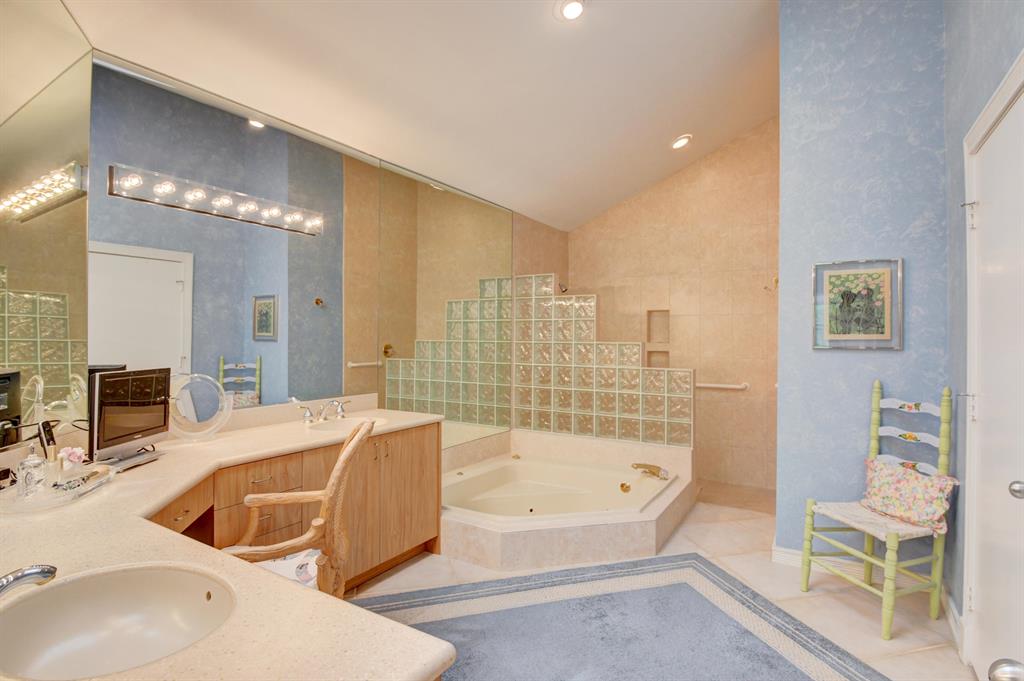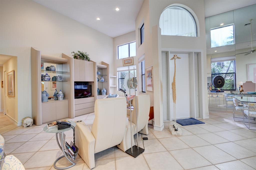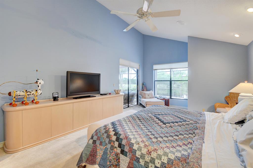 Great cul-de-sac lot with screened in swimming pool, direct LAKE & GOLF VIEWS and has fenced in side yard perfect for children and pets. Roof (4 years old), A/C has two units (4 years and 1 year old), Culligan water softener, Flo Logic system has been installed to determine and shut off water if a leak occurs (great for seasonal owners or if you travel often). This lovely home has 3 bedrooms, 3 full baths + powder room, living and family room, wet bar, volume ceilings, 2 car garage with storage cabinets and accordion shutters. Kitchen is sleek consisting of modern style teak wood cabinets, black granite countertop, black appliances and a large bay window in breakfast area that lets in lots of light. Neutral tile laid on the diagonal throughout home and guest bedrooms. (MORE)