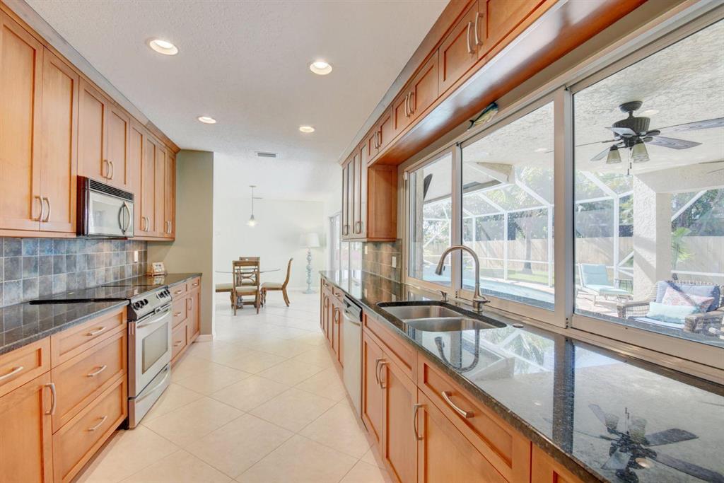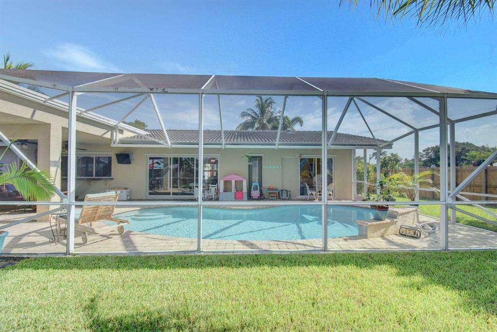 Beautiful, move-in-ready home in highly sought after East Boca Square neighborhood & A+ rated Addison Mizner School District. This 3BD/2BA split floor plan home features a rare 14'x24' roof covered outdoor entertaining patio space with built-in surround sound, slate bar pass-thru to kitchen & fully screened-in salt water pool w/waterfall. The home features a 1.5 car garage w/ A/C, a circular paver driveway and oversized storage shed. Yard offers brand new fence with gate access for boat/RV parking & 3 mango trees. The interior features an updated kitchen with 42'' custom wood cabinets w/glass inlay, granite countertops, stainless steel appliances and an interior laundry room w/shelving storage. Master bedroom suite offers walk-in closet & 3 piece bath. NO HOA! Short walk to Addison Mizner.