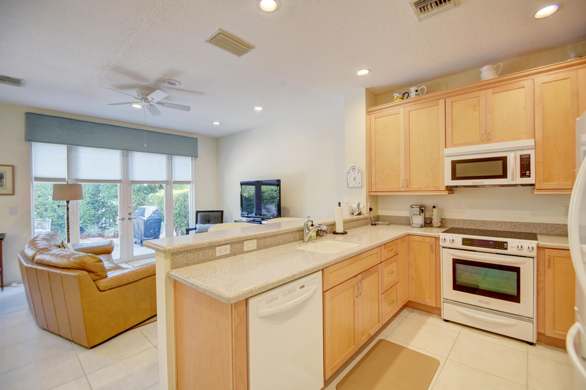 Located on private interior corner lot, lovely front double doors open into this tastefully remodeled home of 3 bedrooms plus a loft -- light & bright offering neutral tile & wood flooring; updated kitchen with light oak shaker-style cabinetry, corian countertops & a charming breakfast nook; updated bathrooms; custom window treatments; LED lighting; custom closet design; newer washer & dryer;new air conditioning system; & hurricane-rated insulated garage door. The staircase features a new banister & the landing features new railings. The second floor offers a Master Bedroom, closed loft with built-in desk & 2 bedrooms that share a bath.French doors of impact glass lead to a charming open pavered patio with tranquil landscape design.