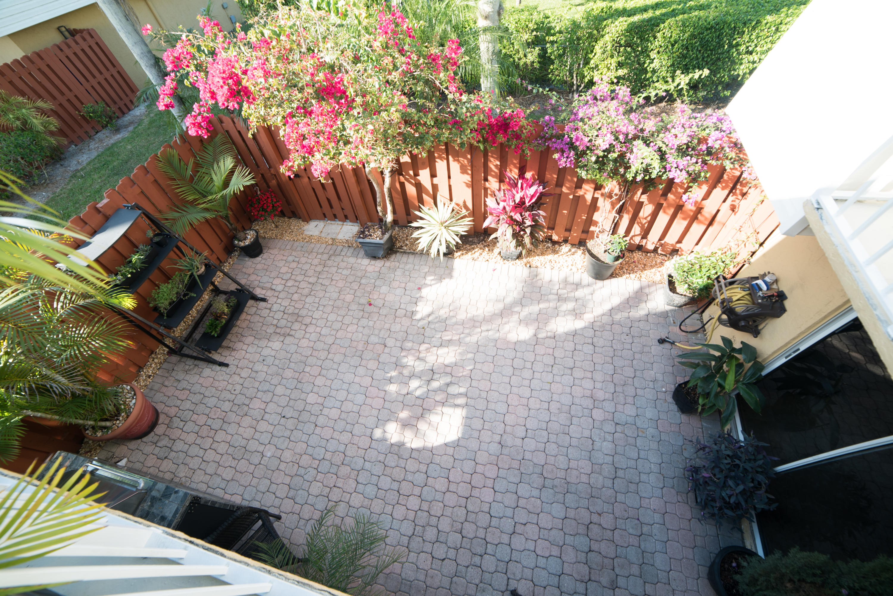 BEAUTIFUL RENOVATED AND UPGRADED 2 BED/2 BATH TOWNHOME! ENTER THE GORGEOUS COURTYARD WHICH HAS BEEN BEAUTIFULLY MANICURED INSIDE AND OUTSIDE OF THE GATES WITH LUSH LANDSCAPING AND BEAUTIFUL BOUGAINVILLEAS. BRICK PAVERS AND A GRILL MAKE THIS LARGE COURTYARD AREA PERFECT FOR ENTERTAINING. THE FIRST FLOOR FEATURES A LARGE LIVING ROOM SPACE WITH UPGRADED FLOORS. THE DINING ROOM AND KITCHEN AREA LOOK OUT ONTO THE COURTYARD. TRAVERTINE FLOORS, UPGRADED KITCHEN CABINETS, GRANITE COUNTERTOPS AND STAINLESS STEEL APPLIANCES INCLUDING A MIELE DISHWASHER MAKE THIS KITCHEN A DREAM. FIRST FLOOR BATHROOM HAS BEEN RENOVATED AND FEATURES A BEAUTIFUL VANITY AND LARGER TILE FLOORS. THE SECOND FLOOR FEATURES 2 LARGE BEDROOMS WHICH BOTH HAVE BALCONIES AND LARGE CLOSETS. THE BATHROOM HAS ALSO BEEN RENOVATED