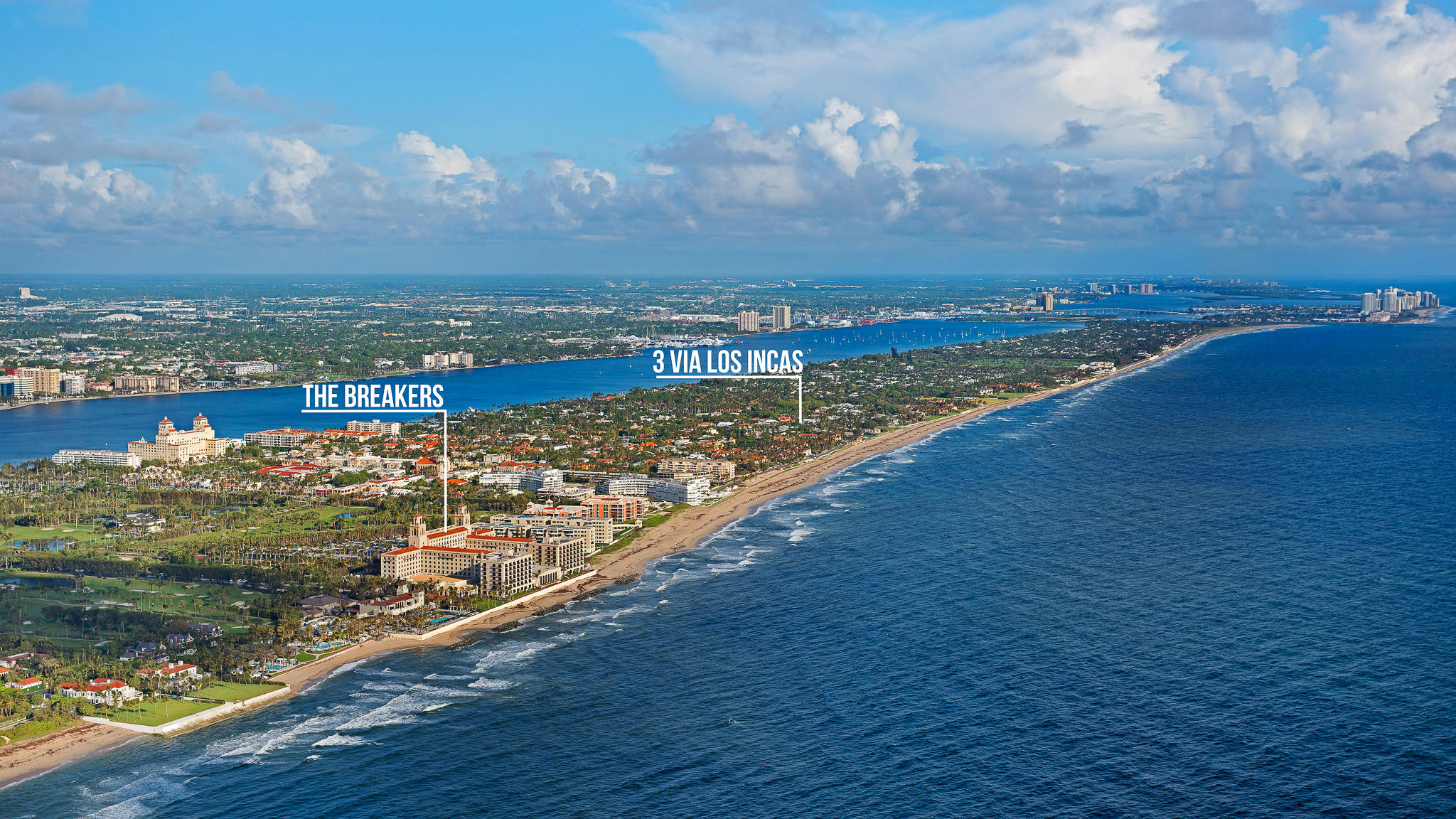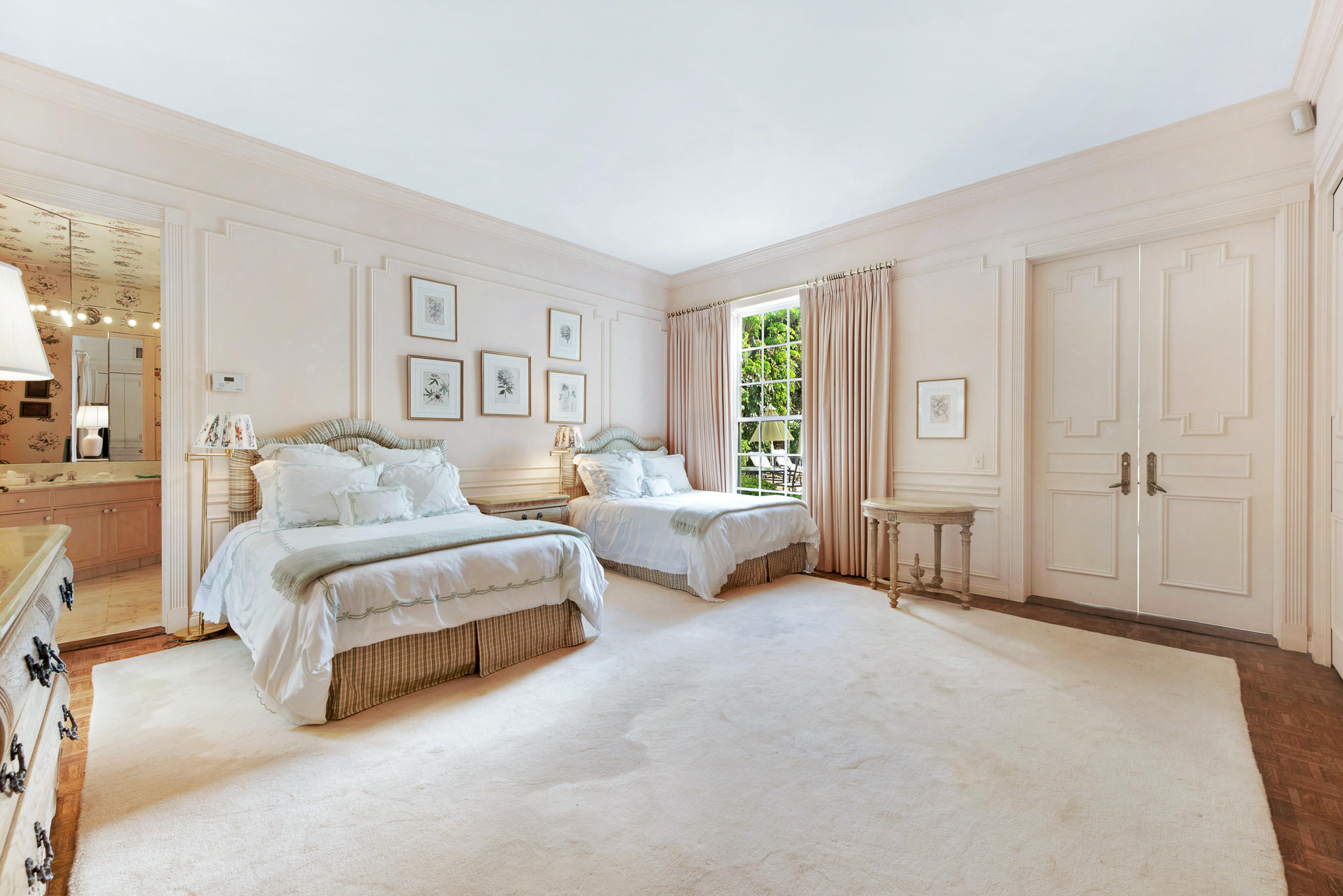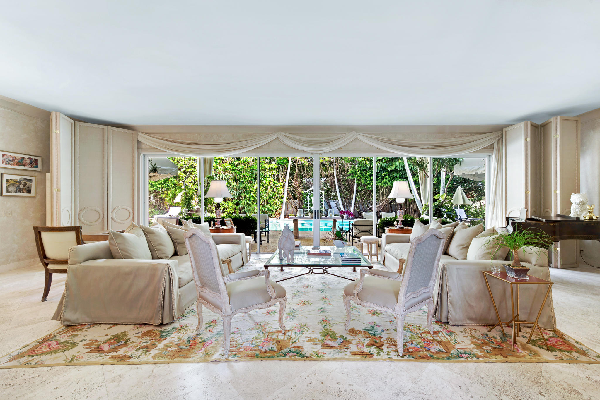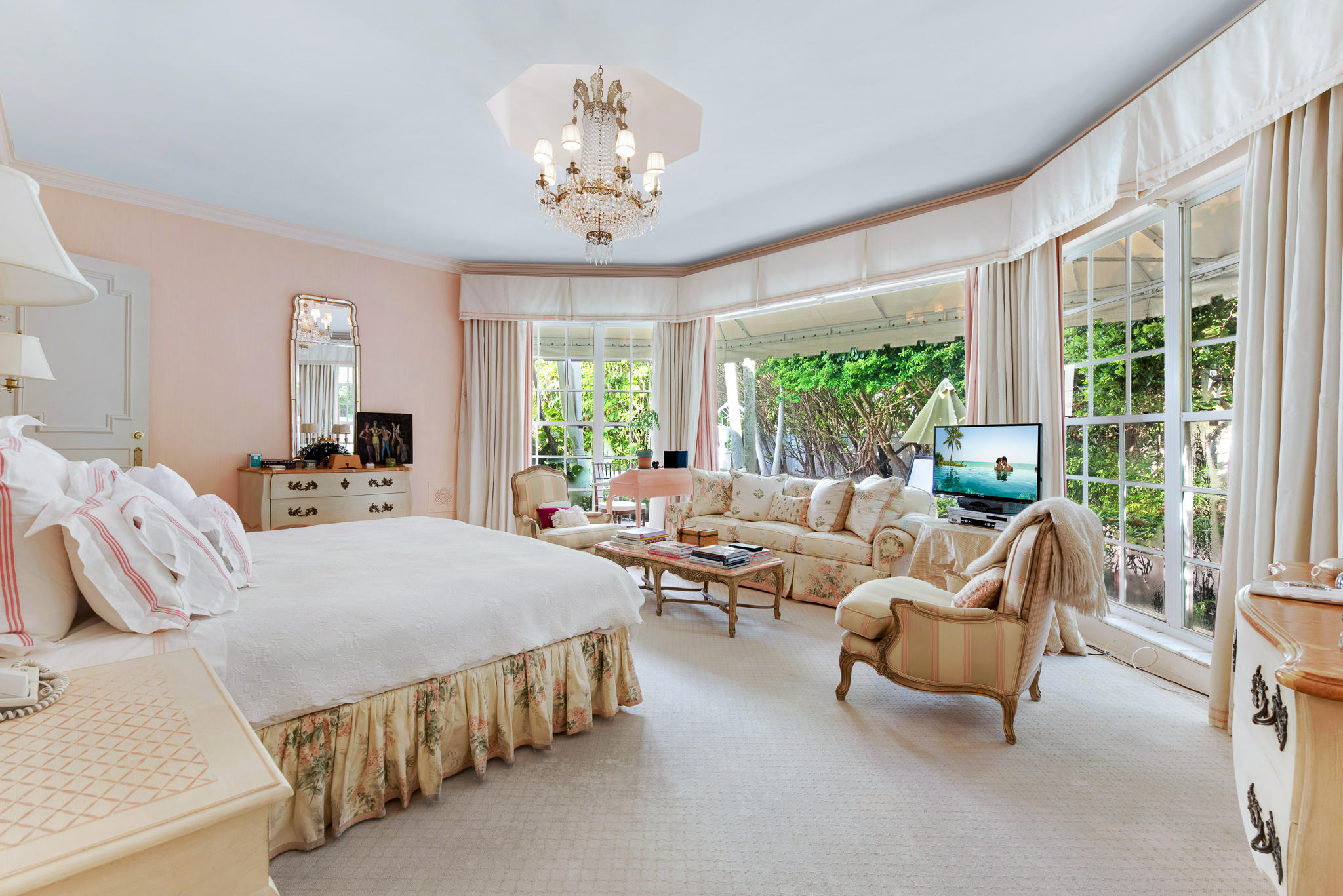 Stunning Palm Beach Regency built by Robert Gottfried and designed by Ames Bennett. Located in a wonderful central location, only three houses from the beach. The property is situated on a large lot approximately 140' X 125'. The spacious residence offers 5 bedrooms, 5 1/2 baths, 10 foot ceilings on the first floor with a formal living room and dining room, a library/family room, kitchen and a cabana/exercise room right off the large swimming pool. Other features include lush tropical landscaping with two papaya trees, private street with underground utilities, deeded beach access for homeowners and their guests, and easy access to the Palm Beach bike trail.