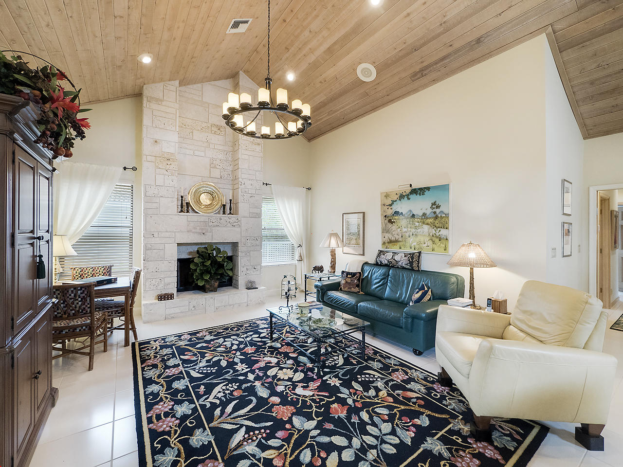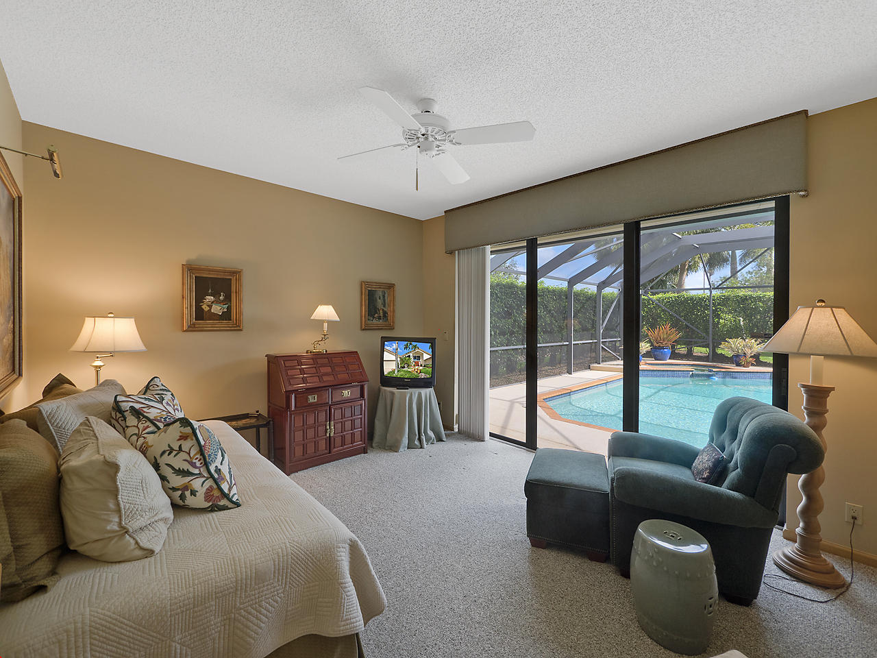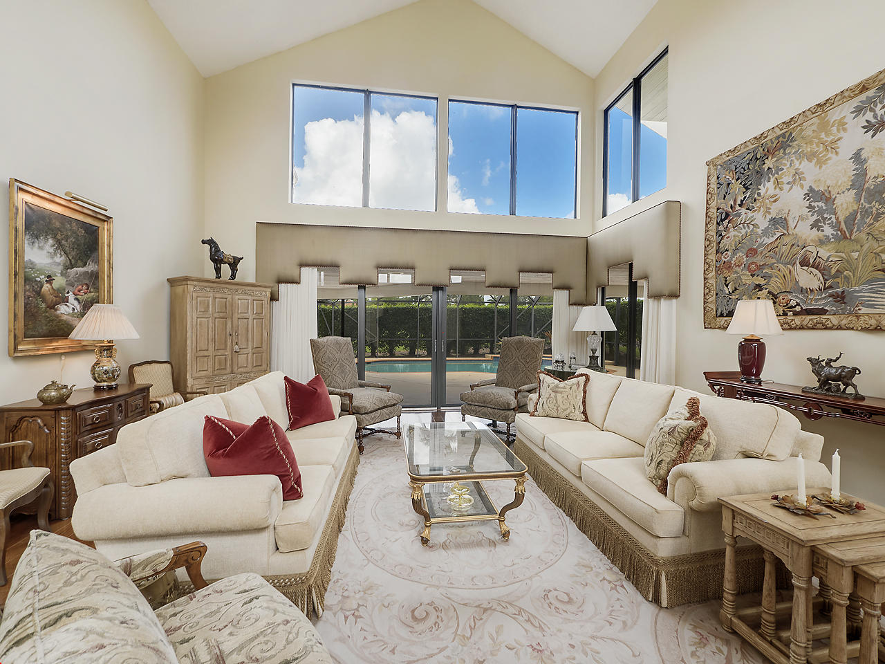 SPACIOUS TRUE 4 BEDROOM FAMILY HOME WITH FORMAL LIVING, DINING & AMAZING FAMILY ROOM WITH FIREPLACE ADJOINING OPEN KITCHEN. AS PER OWNER HURRICANE IMPACT WINDOWS, SLIDERS & FRONT DOORS (except laundry & cabana bath doors). NEWER Underground PROPANE TANK. NEW GAS POOL HEATER. 3 AC's: MAIN UNIT 2017 others 2009. ROOF 2003. POOL SCREEN ENCLOSURE 2006. VOLUME CEILINGS (WOOD TONGUE&GROOVE IN FAMILY ROOM). NO STEP-DOWNS ALL 1 LEVEL THRU-OUT. PRIME GOLF VIEW LOT. HOME IS IN GOOD CONDITION BUT KITCHEN & BATHS ORIG. CLUB MEMBERSHIP REQUIRED. SIZES/MEASUREMENTS/DATES/AGES APPROX & SUBJECT TO VERIFICATION. HOA INC. CABLE/INTERNET/24HR MANNED GATE/ALARM.