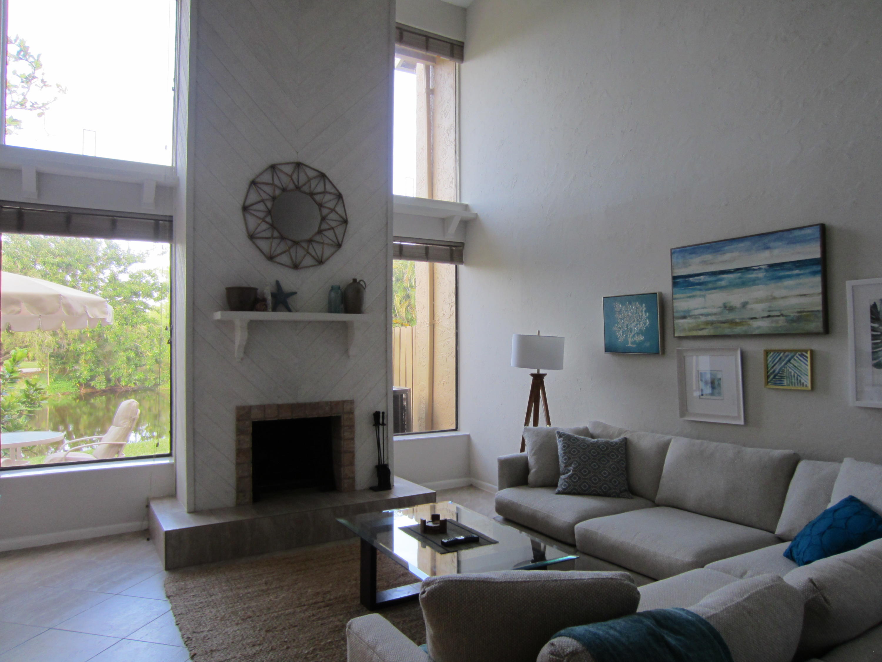 Spectacular Spacious Townhouse in Central Boca Raton. On tax rolls as 3 bedroom but 3rd has been converted to 1st floor Den, easily converted back. Soaring cathedral ceiling in Living room and Master Suite. Updated Bathrooms and Kitchen. Wood Burning Fireplace, Eat-In Kitchen, Separate Dining Area, Private Balcony in Master Suite, Pavered Back Patio which backs to Lagoon and Green Space PLUS an AWESOME (373 Sq. Ft.) Private Front Courtyard offering Additional Living Space - Great for Entertaining! Home is located in the Prime Boca Del Mar area of South Central Boca and is close to I95, Turnpike, Upscale Shopping, Beaches and A-Rated Schools. Not in a Flood Zone. Low HOA. Roof 2016, AC 2009, HWH 2016
