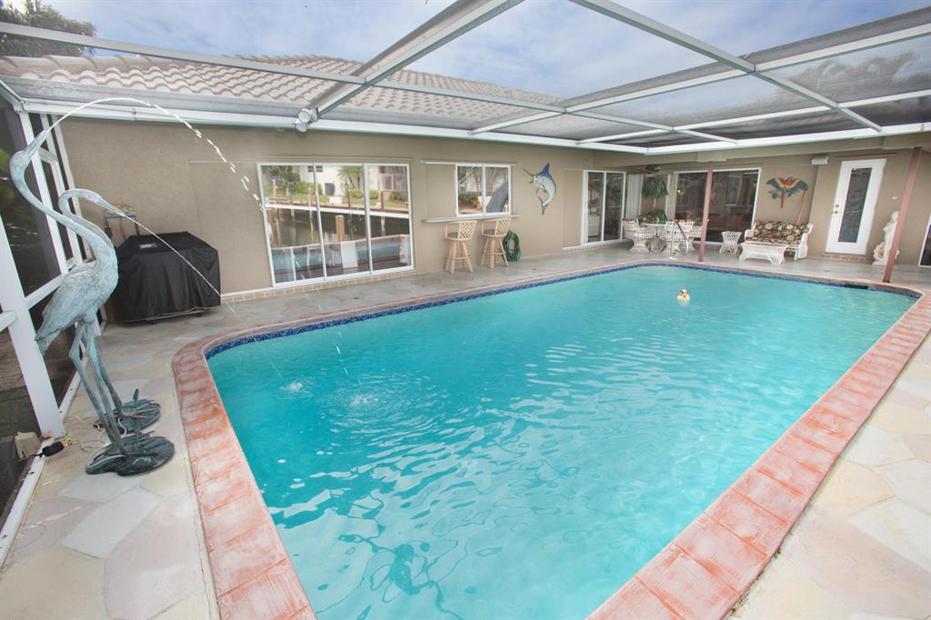 Best value on the water! The house was expanded from its original size providing spacious bedrooms and ample living area. This home has 3 very large bedrooms and a separate office. Enjoy a large eat in kitchen, a large 15x30 pool with screen enclosure. Bring your boat to this charming one level canal home in East Boca Raton. The house features an office with fireplace, a screened pool enclosure and dock.