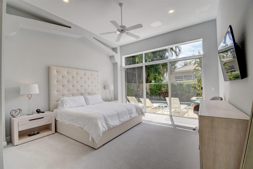 This contemporary one story remodeled home is nestled on a private interior lot boasting three bedrooms & three full baths. The home features volume ceilings with all updated LED high hats which adds extra light to an abundance of natural sunlight. The new kitchen features white lacquer cabinets with quartz tops and new stainless steel appliances. The new roof was installed in 2018. The updated marble master bathroom and the custom closet design are beautiful additions to the master suite. The Home has a central vacuum system, newer washer and dryer and the A/C units are 2011 & 2012. The private south facing open patio has a heated pool and spa. This home may be purchased completely furnished if you choose to move in and are ready to start enjoying the Woodfield Country Club lifestyle.