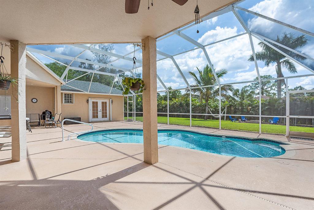 Click on the link to view the video tour of this Spectacular Home with 5 bdrms 2 1/2 bath 2 car garage sitting on an Lucious 1.25 acre land with City Water and NO HOA. Manicured lawn, with auto sprinkler system, Fruit trees (Mango and Avocado). Fully fenced with an electric gate. A detached 2 car garage at the end of the driveway is approx 25x25 great for cars/ATV's and other recreational vehicles plus 2 sheds for extra storage. Walking in to the home through the double doors you are greeted with the elegance of the home and a view to the tranquility of the out doors. The pool deck (50x40) is enclosed and has a fully equipped Summer Kitchen for any chef and plenty of seating for great entertaining.