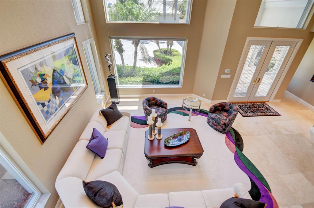 Elegant home with golf course and lake view located in the award-winning club of Broken Sound in the heart of Boca Raton. Soaring 20 foot ceilings, gorgeous marble tiled floors, 3-car garage, and a fabulous outside entertaining area make this the ideal home for Florida living. Kitchen includes wood cabinets, granite countertops, propane-gas stove, double electric ovens, water filter, and Monogram refrigerator. Master bedroom, located on the main floor, offers built out walk-in closets. Master bathroom includes his and hers sinks, separate shower and jacuzzi tub, plus an additional linen closet. This bright house features a newer S-tiled roof (2009) and newer flat roof (2007), 3 AC units (2017/2007), whole house water filtration system, hurricane shutters, 500 gallon in ground propane
