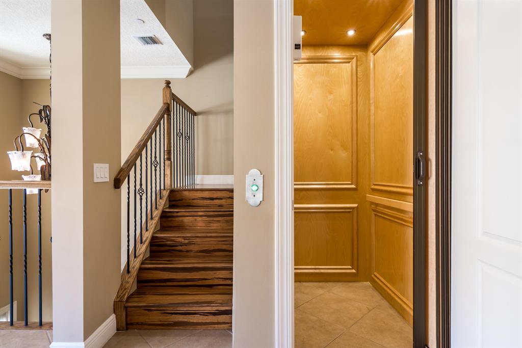 The largest Bellavita model in Trieste with the best location in the community and private yard with no rear neighbors! This 3-level townhome with a private elevator has 3,244 sf of living space, 3 bedrooms, 3 full baths, a powder room & a 2-car garage. The ground level features a large entertainment room with a custom-built bar with granite counters & a large TV, full bathroom & access to the private backyard with extended patio & a built-in gas BBQ grill. On the second level you will find an open living & dining area, large kitchen with stainless steel appliances, gas range, double oven, granite countertops & extended backsplash, & a family room with a built-in entertainment center. The upper level has the master bedroom with coffered ceiling, 2 large walk-in closets & an on-suite bath