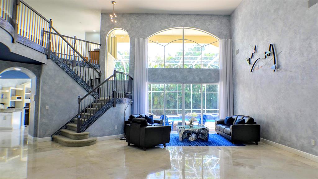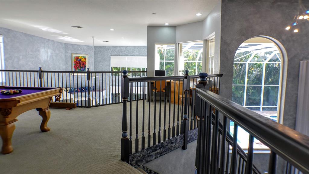 BEST VALUE IN SATURNIA! A SPECTACULAR RENOIR HOME ON OVERSIZED PRIVATE LOT! LARGE SCREENED PATIO, HEATED SALTWATER POOL/SPA. NEW ROOF 2006,ACCORDION SHUTTERS AND MARBLE FLOORS IN MAIN LIVING AREAS. The first floor offers a large kitchen that opens to a SPACIOUS FAMILY ROOM, STAINLESS STEEL APPLIANCES NEW IN 2016, ELEGANT DINING ROOM AND FORMAL LIVING ROOM WITH 20' SOARING CEILINGS, OVERSIZED MASTER with his and hers walk in closets, guest bedroom with bathroom and OFFICE WITH BUILT IN DOUBLE DESK complete the first floor. A stunning staircase leads to the second floor with THREE SPACIOUS BEDROOMS, 2 bathrooms and LARGE LOFT area with built in desk. There is a FINISHED THREE CAR GARAGE AND CIRCULAR DRIVEWAY. Across from A rated schools. A PERFECT HOME FOR ENTERTAINING and raising kids.