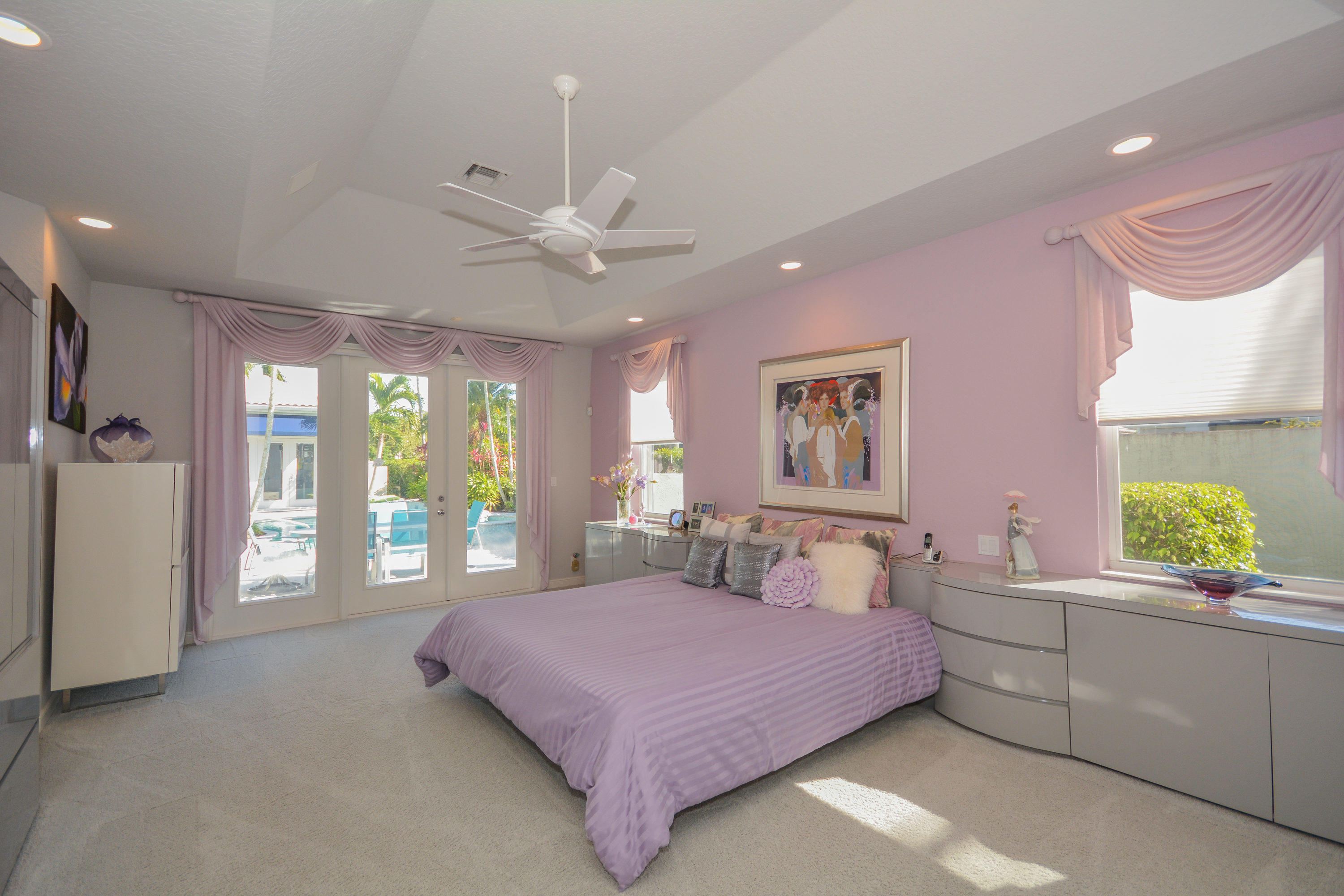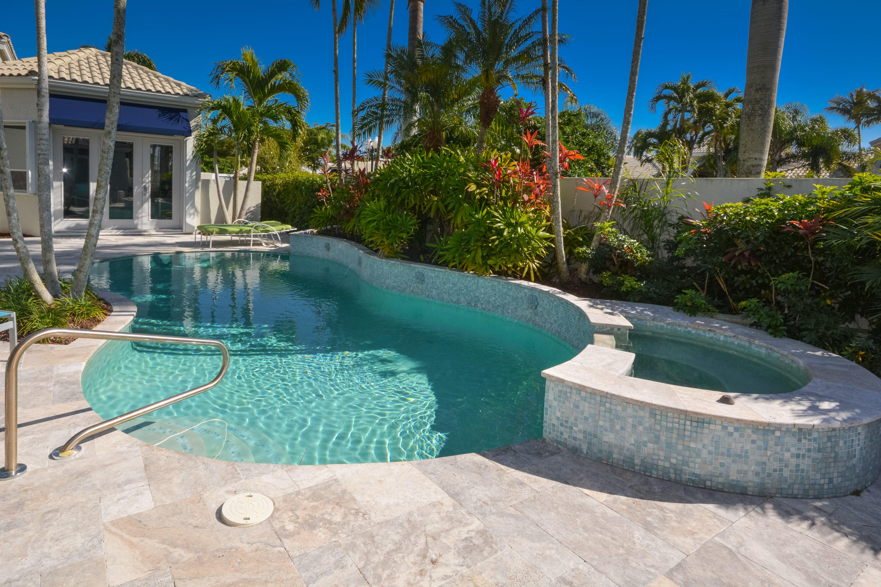 MOTIVATED SELLER!! Move In Ready! Just bring your furniture and tooth brush!! Immaculate and bright 4 bedroom, 4.1 bath contemporary courtyard home situated on a private corner lot with golf course views. This home is a true gem offering a modern Aran Cucine Italian Kitchen with white laquer & lilac glass cabinets, including a huge white laquer Italian coplanari pantry, lavender hue quartz countertops with waterfalls and Porcelanosa tile backsplash. Jenn air top of the line appliances including a double wall oven, induction cooktop, 48'' refrigerator, and Asko dishwasher. This home's living space is completely renovated, with an open floor plan in the great room, kitchen, dining room, and family room. Full house hurricane accordion shutters and a natural gas generator.
