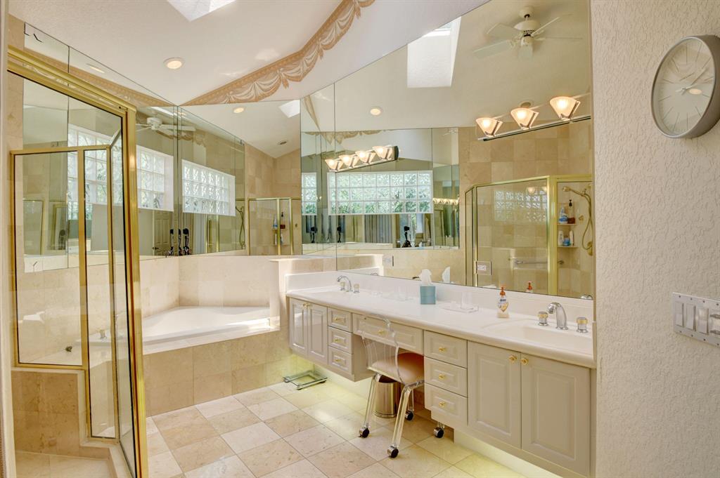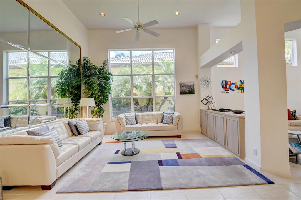 Close to 2 entrances of Woodfield & walking distance to shopping, schools &community pool, this light & open 1-story home of 3 bedrooms & 3 baths is located on a quiet private oversized pie-shaped lot offering volume ceilings, neutral beige tile floors & carpeting; a charming kitchen with white high-gloss cabinetry, black granite countertops & lovely breakfast nook; a built-in Family Room entertainment center; mirrored walls and custom closet design. The kitchen & master bedroom are extended from the standard model, and there are also extra high-hat lighting;a water filtration system;newer washer & dryer; newer water heater and air conditioning; perimeter pest control system & garage storage cabinetry. The large private rear patio is inviting with lovely landscape design & room for a pool.
