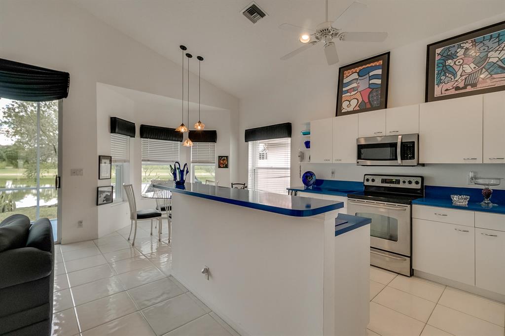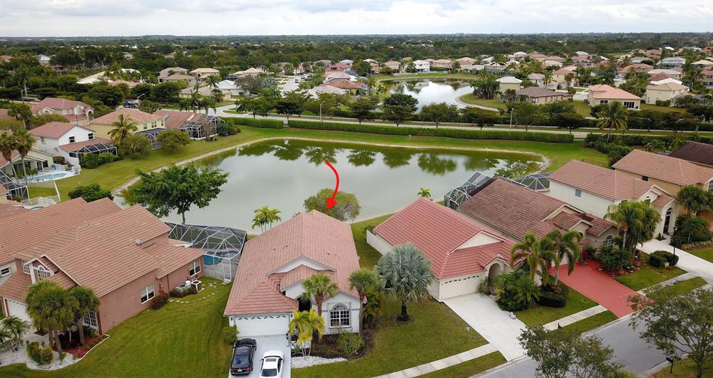 Lovely and well maintained 3 bedroom 2 bath home in the Monteray Bay section of Boca Winds. This beautiful home sits on a serene and private lake and features vaulted ceiling, open floor plan, spacious kitchen with breakfast area, 42'' cabinets, stainless steel appliances, 6 ceiling fans, updated washer dryer, tile throughout common area and attractive vinyl floors in bedrooms. Master bath has a jaqcuzzi tub and double sinks. Enjoy the outdoors in the screened in lanai. Accordian hurricane shutters throughout and updated air conditioning. Close to A rated schools. Low HOA fees.