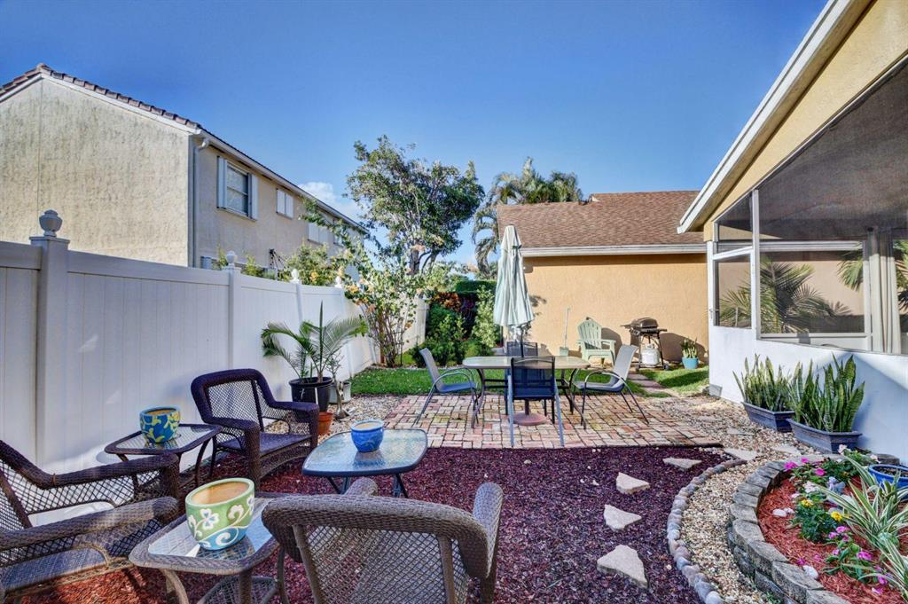 Immaculately kept 3 bedroom plus den/office home in the very desirable Boca Landings neighborhood. Great split floor plan with an open kitchen and separate breakfast area overlooking the serene garden. Separate covered patio with sitting area. Newer roof and A/C. The community has a great clubhouse with pool, playground, basketball and tennis. LOW HOA FEES and PET FRIENDLY. Close to Boca's A rated schools, great shopping and restaurants.