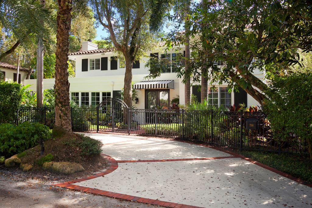 Poised on a choice gated corner lot, this recently renovated transitional estate is served by a wide circular drive in a mature tropical setting studded with canopy of old oak trees. The screened loggia and covered balconies - all with tongue-and-groove cypress ceilings overlook the glistening salt water heated pool encompassed by a St. Louis brick patio inviting outdoor entertaining area is served by a covered summer kitchen. Landscape lighting adds a dramatic night time effect.